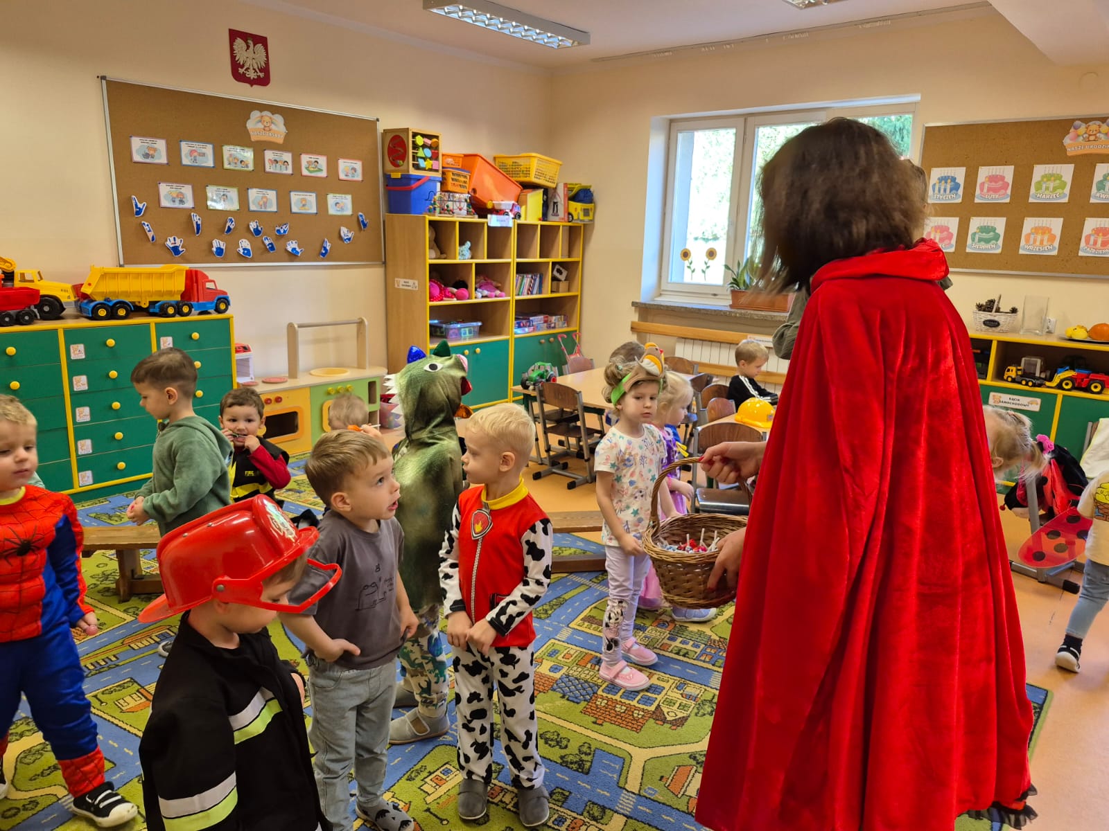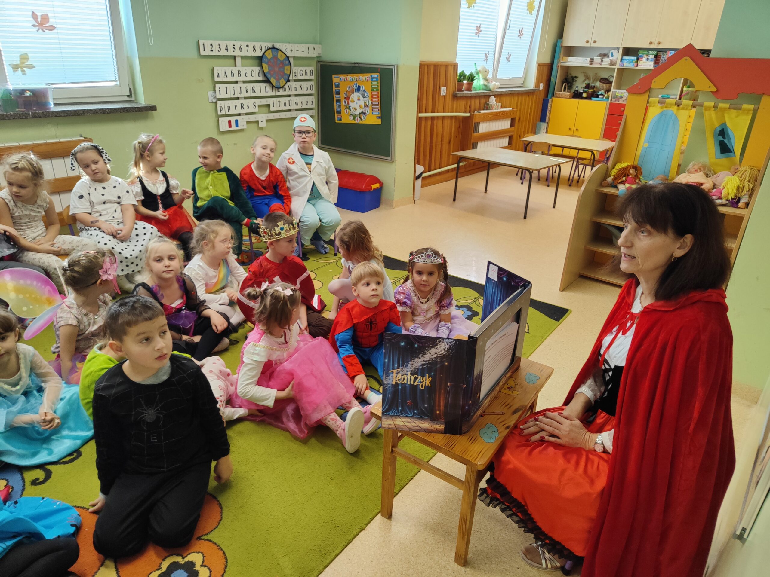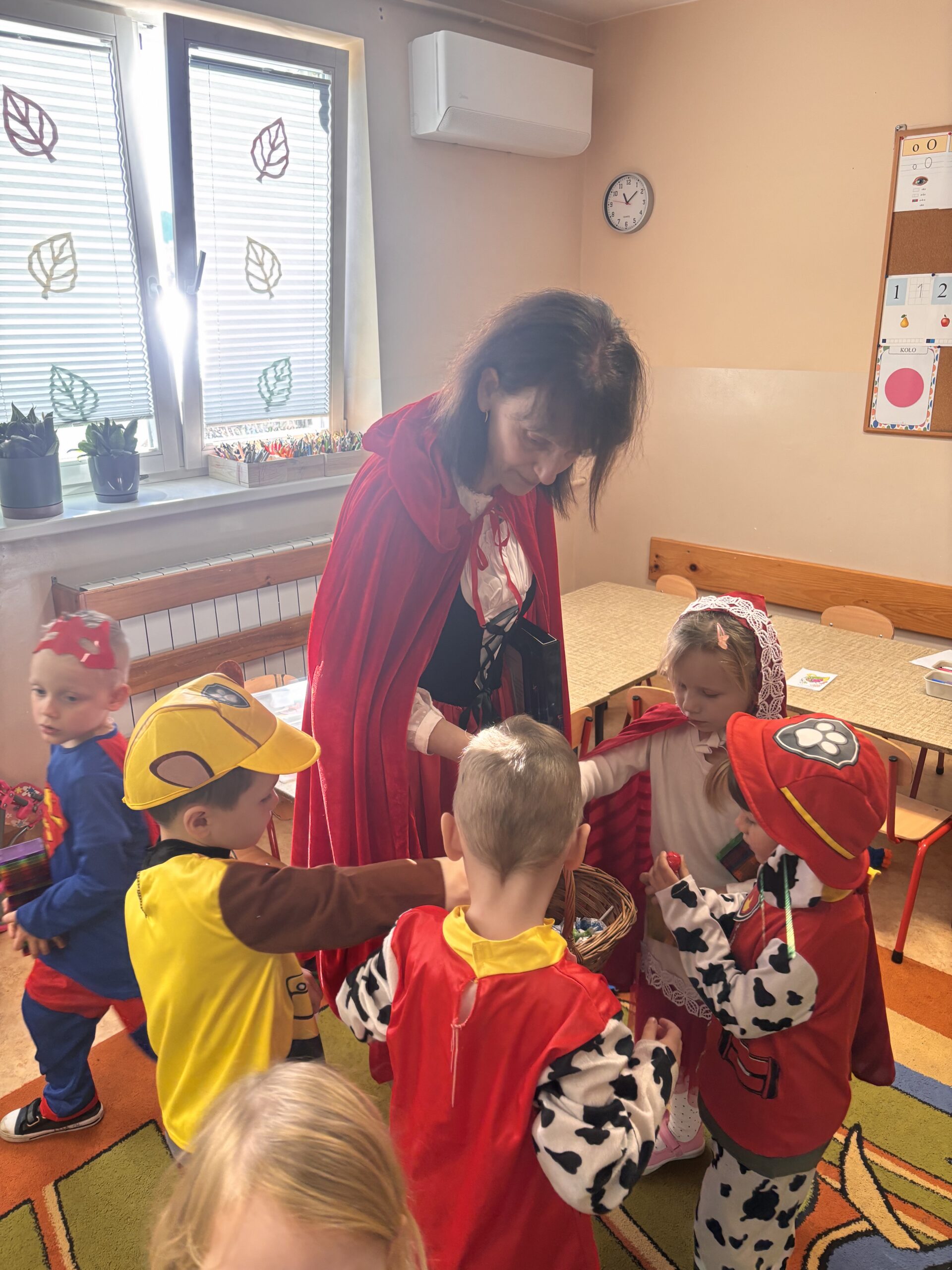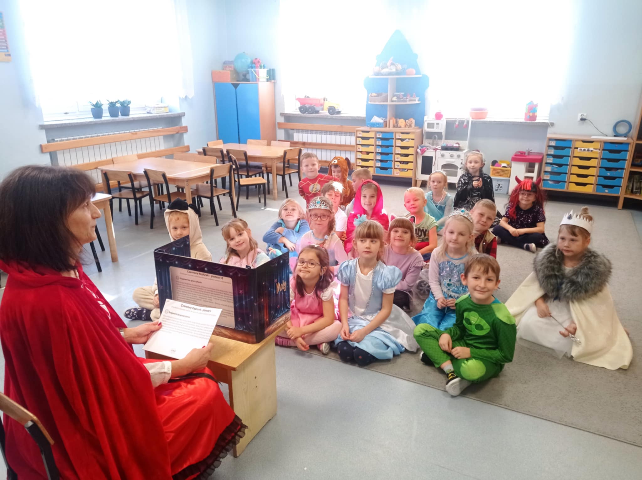 Dnia 4 listopada w Przedszkolu Samorządowym w Bieńkówce odbył się wyjątkowy „Dzień Postaci z Bajek”. Dzień ten z pewnością długo pozostanie w pamięci dzieci, które miały świetną okazję, aby przebrać się za swojego ulubionego bajkowego bohatera .Do grupy dzieci dołączyła w przebraniu Czerwonego Kapturka, pani bibliotekarka. W pełnym stroju