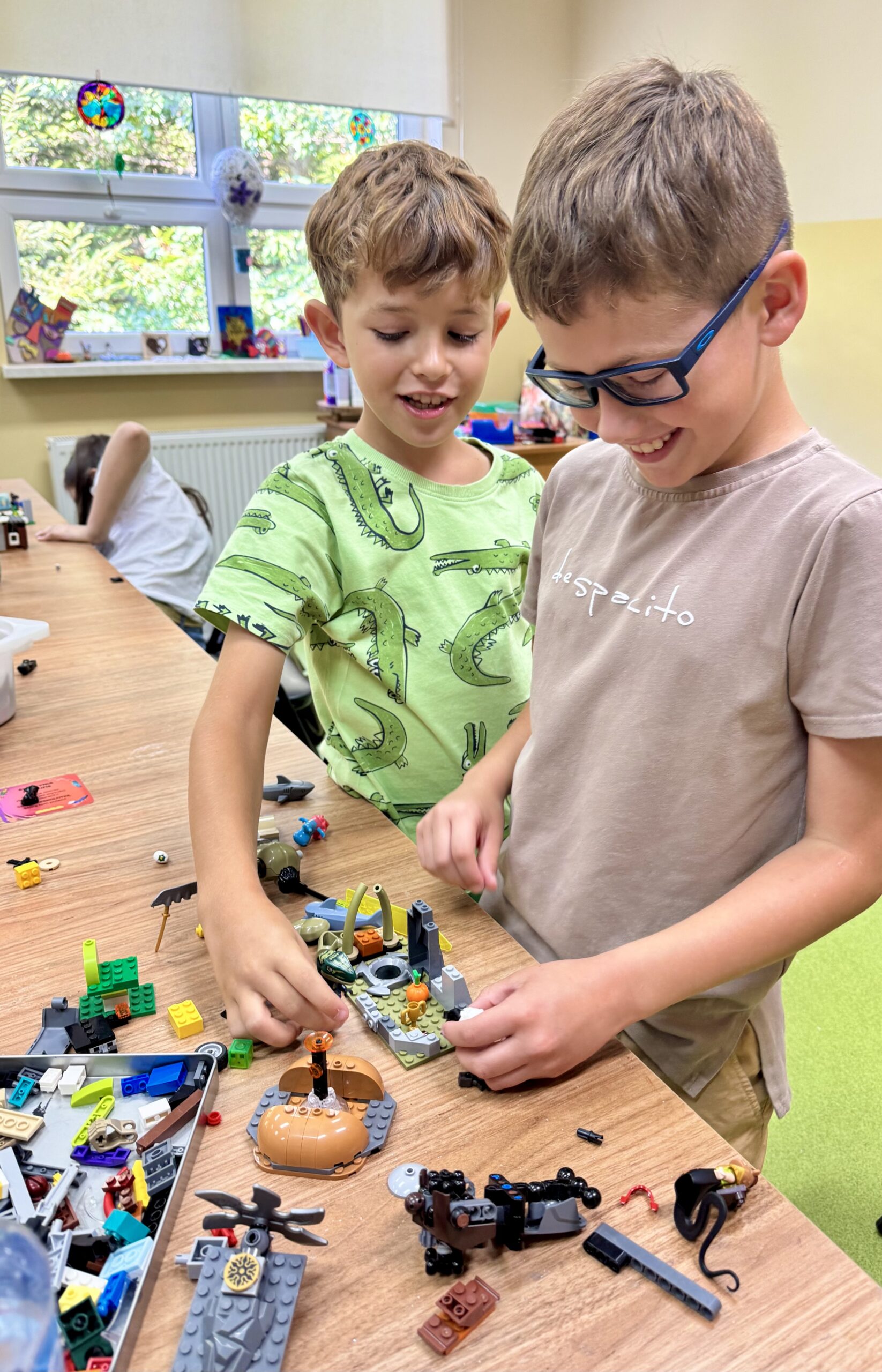 W trakcie wakacyjnych działań w Bibliotece Publicznej w Budzowie odbyły się kreatywne warsztaty Lego „Czytaj i buduj, które połączyły świat książek z twórczą zabawą. Dziękujemy wszystkim uczestnikom za zaangażowanie i twórcze podejście. Na początku spotkania uczestnicy wysłuchali krótkiej bajki, która stała się inspiracją do dalszej części zajęć. Po wspólnym czytaniu dzieci przystąpiły do pracy – ich zadaniem było zbudowanie sceny, postaci lub miejsca z wylosowanej karty, korzystając z dostępnych zestawów LEGO. Powstały fantastyczne budowle stworzone z ogromną wyobraźnią i zaangażowaniem. Każde dziecko mogło zaprezentować swoją budowlę i opowiedzieć o niej innym uczestnikom. Warsztaty nie tylko rozwijały zdolności manualne i wyobraźnię przestrzenną, ale również pokazały, że książki mogą być świetnym punktem wyjścia do zabawy, rozmowy i nauki. Zajęcia przebiegły w radosnej atmosferze, a uśmiechy dzieci i ich pomysłowość były najlepszym dowodem na to, że łączenie czytania z zabawą przynosi świetne efekty. W warsztatach uczestniczyło 21 uczestników.