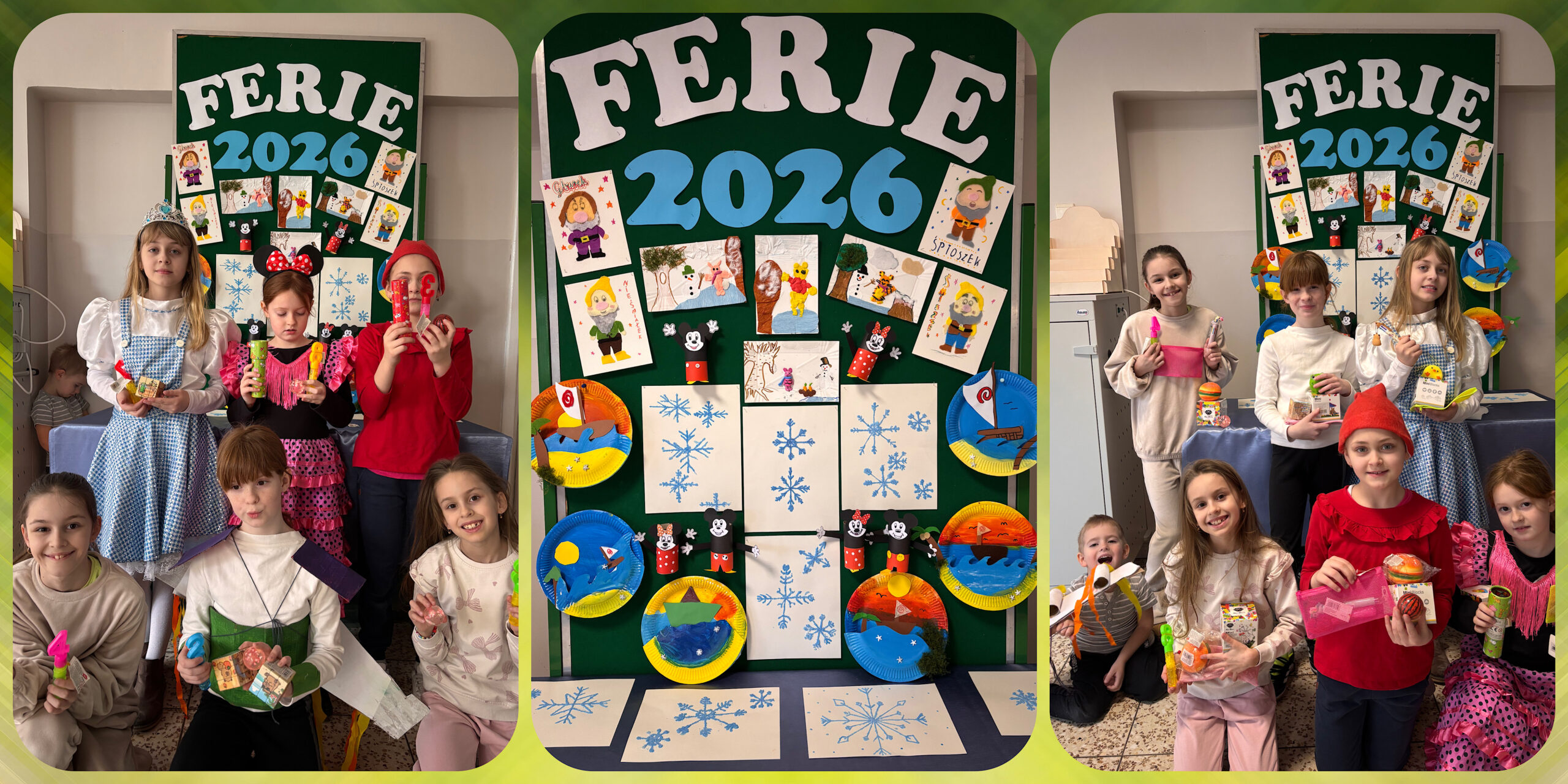 Ferie rozpoczęliśmy spotkaniem z Myszką Miki i Minnie. Dzieci wysłuchały fragmentów bajek oraz ciekawostek o bohaterach. Następnie wzięły udział w konkursie plastycznym „Moja Myszkowa Postać”, tworząc barwne prace przedstawiające ulubionych bohaterów z bajki.