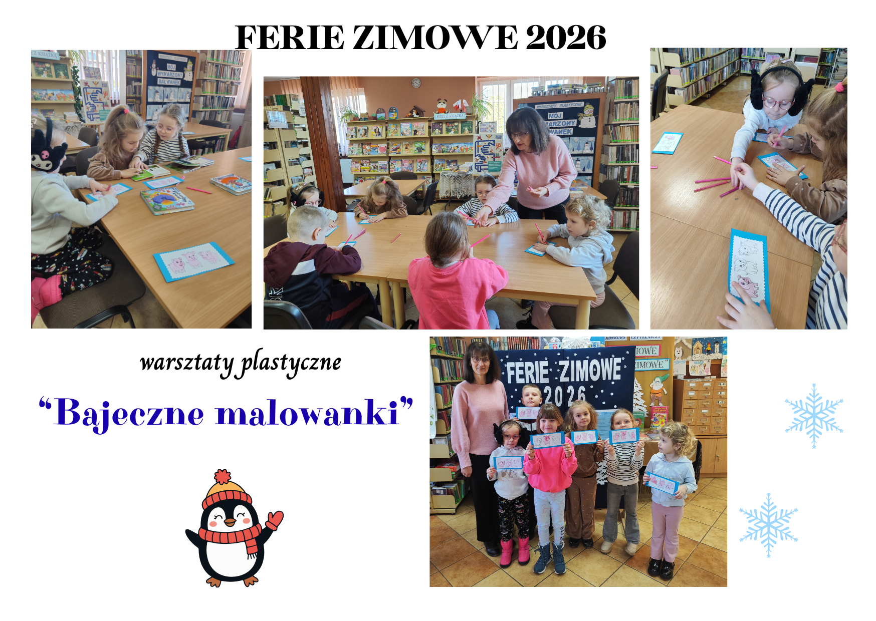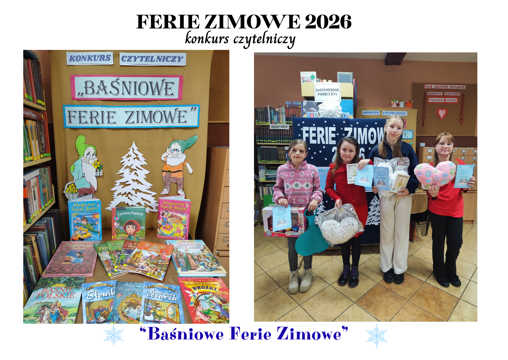 03.02.2026 r  to pierwszy dzień ferii z biblioteką w Bieńkówce. W tym dniu zostały ogłoszone dwa konkursy: „Baśniowe ferie zimowe” – konkurs czytelniczy z naklejkami oraz „Zimowy krajobraz z bohaterem ulubionej książki” – konkurs plastyczny.