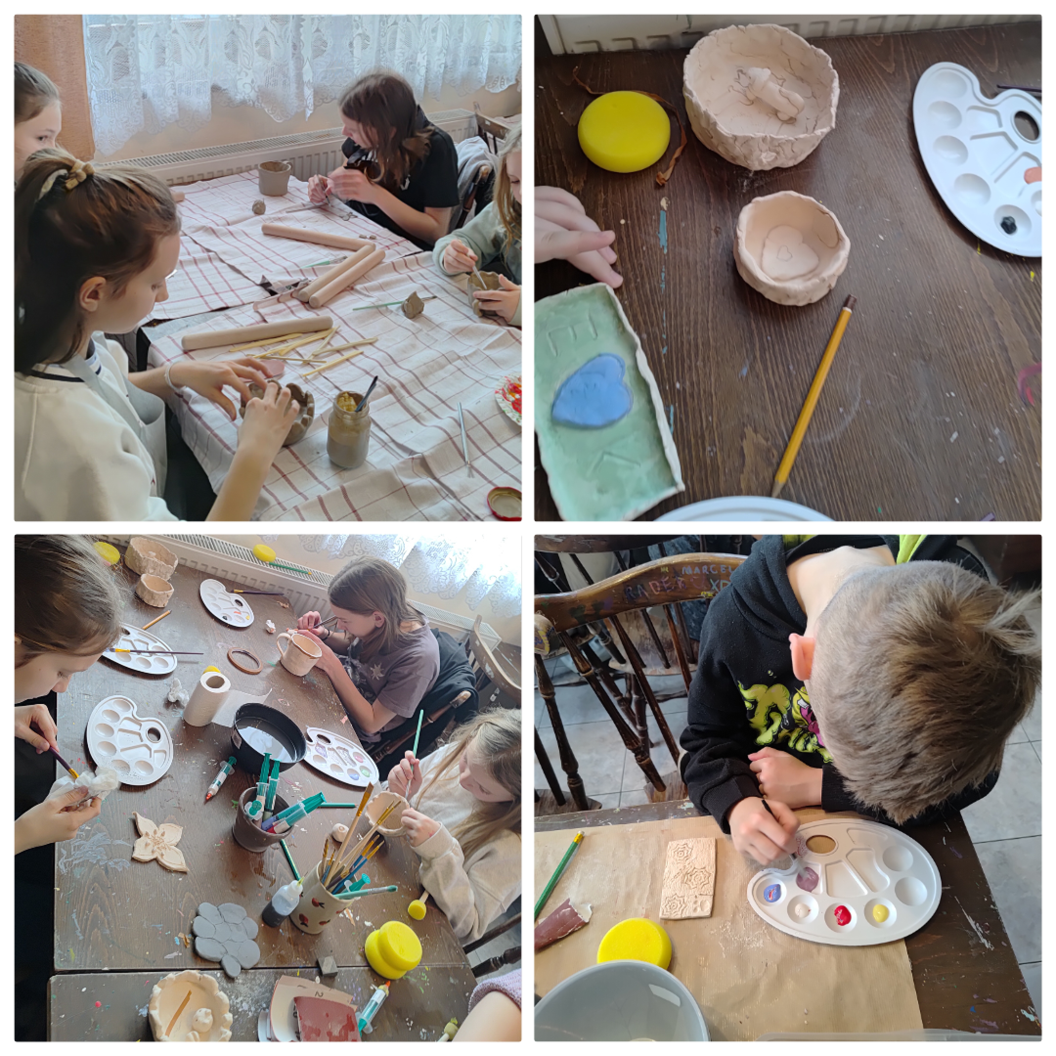 - Warsztaty ceramiczne, były to zajęcia organizowane przez BiOAK, które prowadziła Pani Marta Szczygieł, dzieci malowały własnoręcznie wylepione naczynia gliniane, uczestniczyło w nich 10 dzieci.