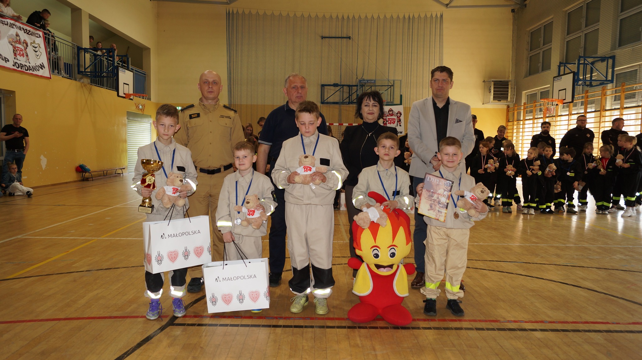 W dniu 19 kwietnia 2026r. odbyły się I Dziecięce Zawody Sportowo-Pożarnicze Powiatu Suskiego. Na hali sportowej Biblioteki i Ośrodka Animacji Kultury w Budzowie gościliśmy drużyny z całego powiatu. Podczas zawodów młodzi zawodnicy nie tylko wykazali się niesamowitą zwinnością i szybkością, ale udowodnili także, że pasja do strażackiego munduru zaczyna się już od najmłodszych lat. Zawody były doskonałą okazją do integracji dzieci z powiatu suskiego, budowania ducha rywalizacji oraz doskonalenia umiejętności obsługi sprzętu strażackiego. Dziękujemy wszystkim organizatorom, opiekunom oraz kibicom za stworzenie wspaniałej atmosfery.