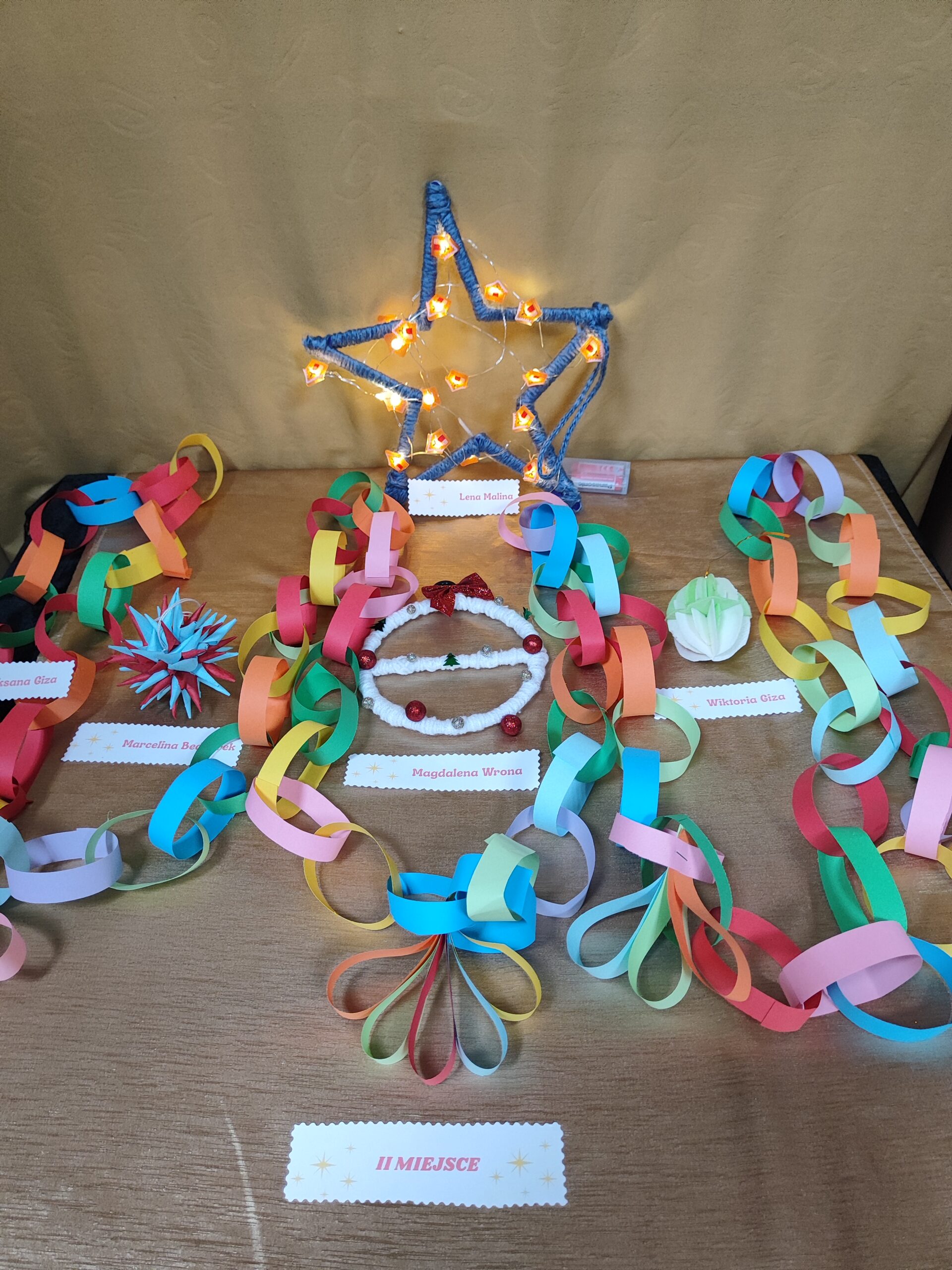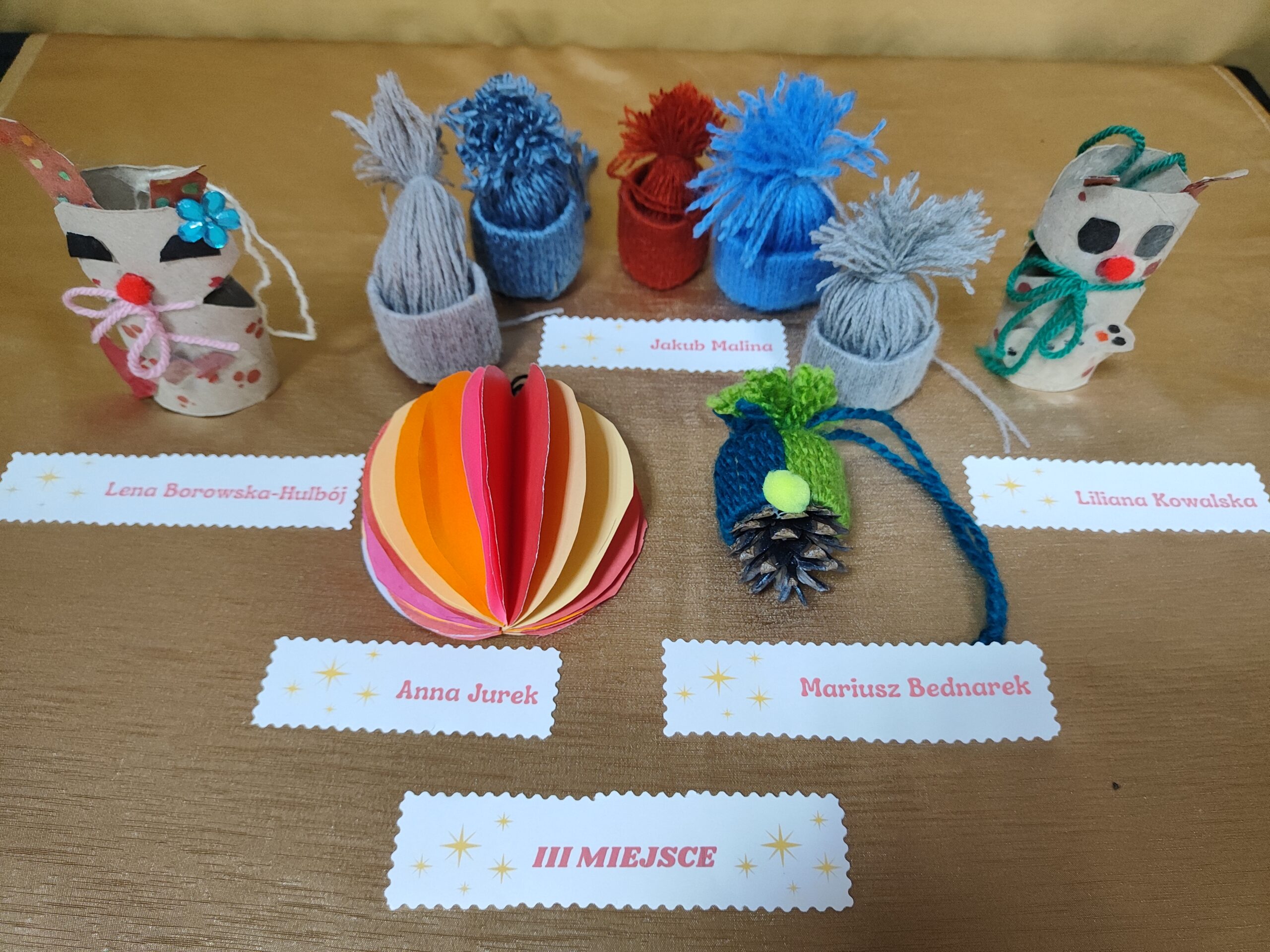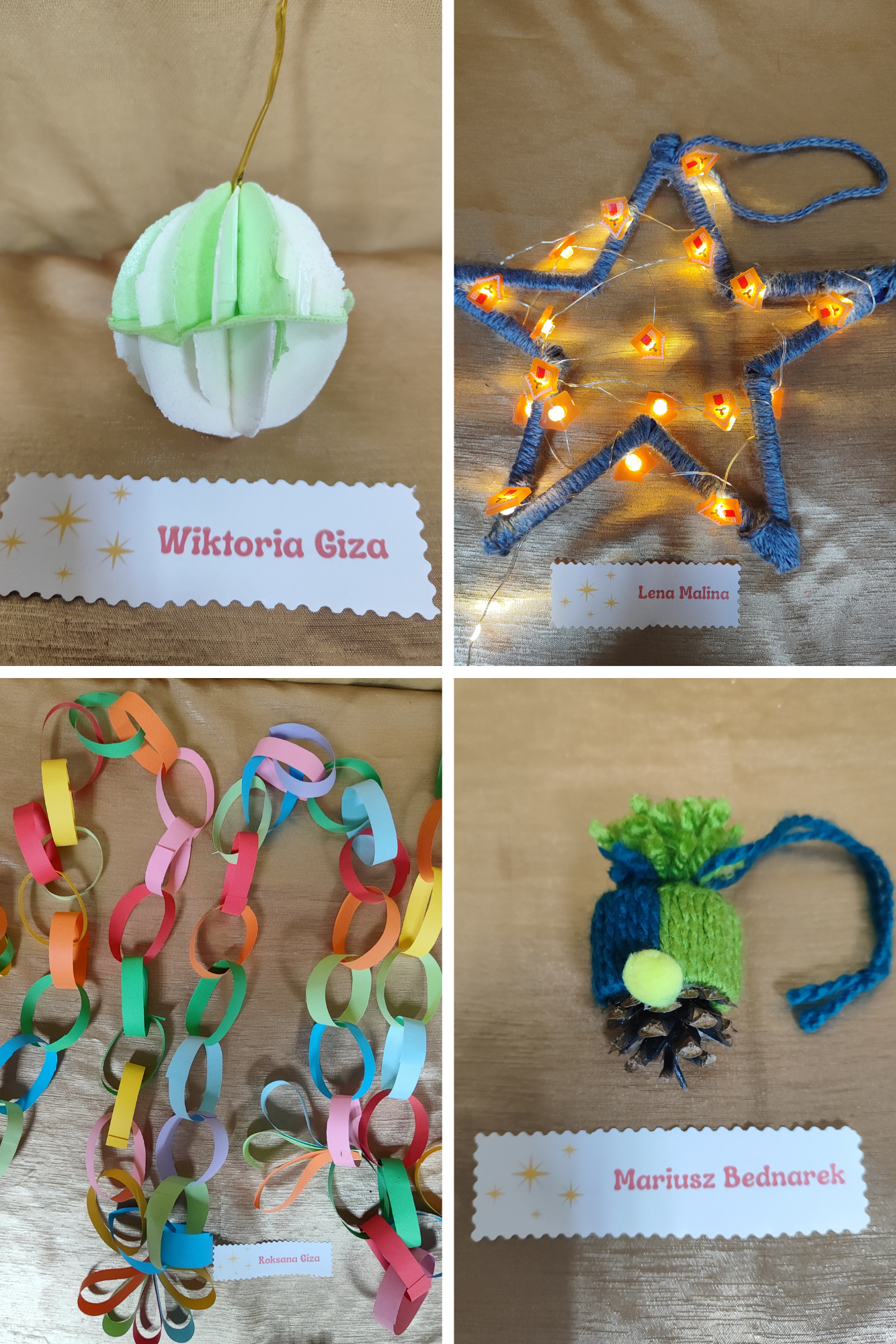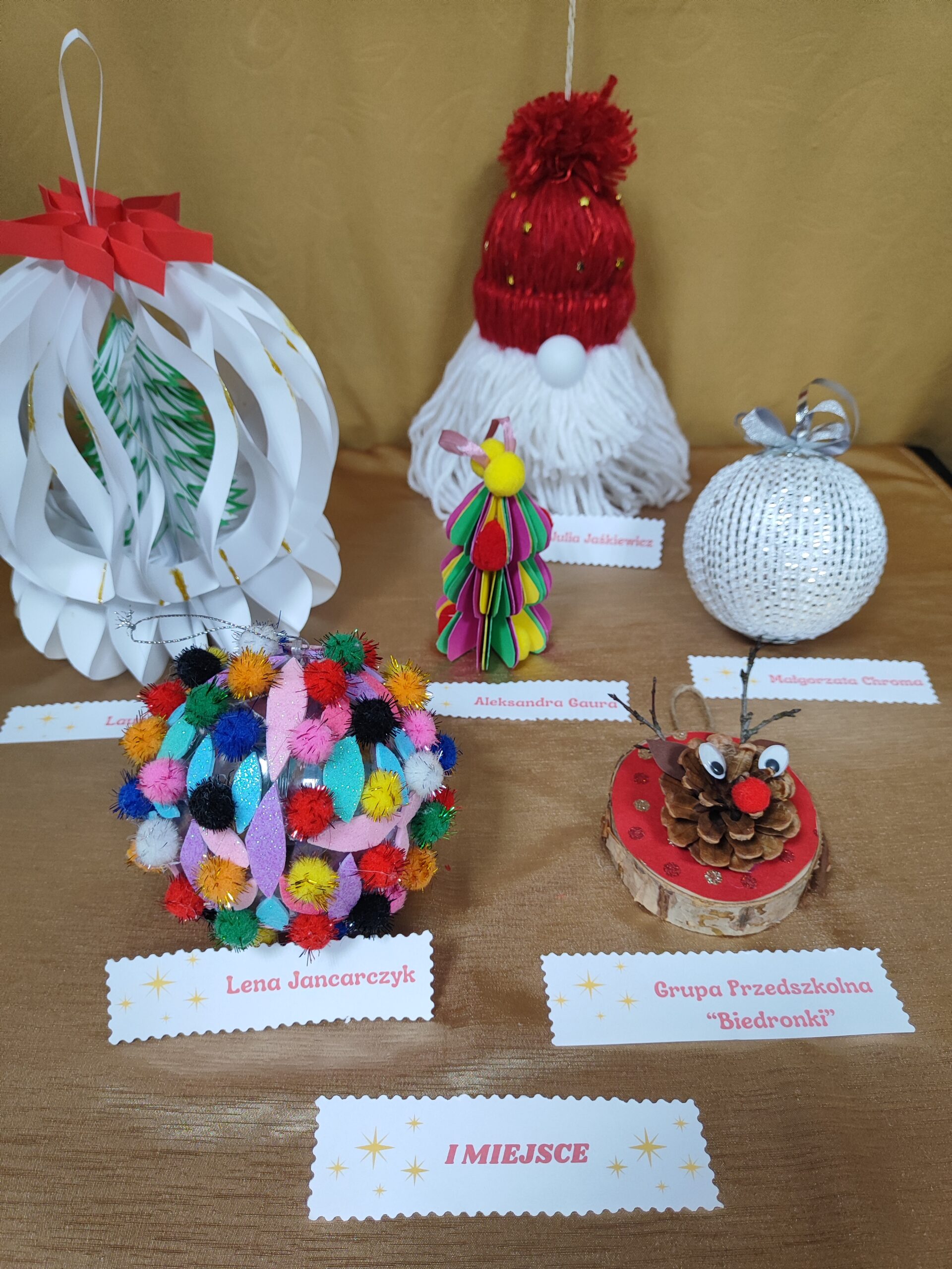 Do tegorocznej edycji konkursu wpłynęło 16 prac, których autorzy jak zwykle zachwycili pomysłowością. Do zrobienia ozdób choinkowych dzieci wykorzystały różne techniki oraz ciekawe materiały. W świąteczny nastrój wprowadzały piękne bombki, gwiazdki, renifery, łańcuchy i mikołaje.