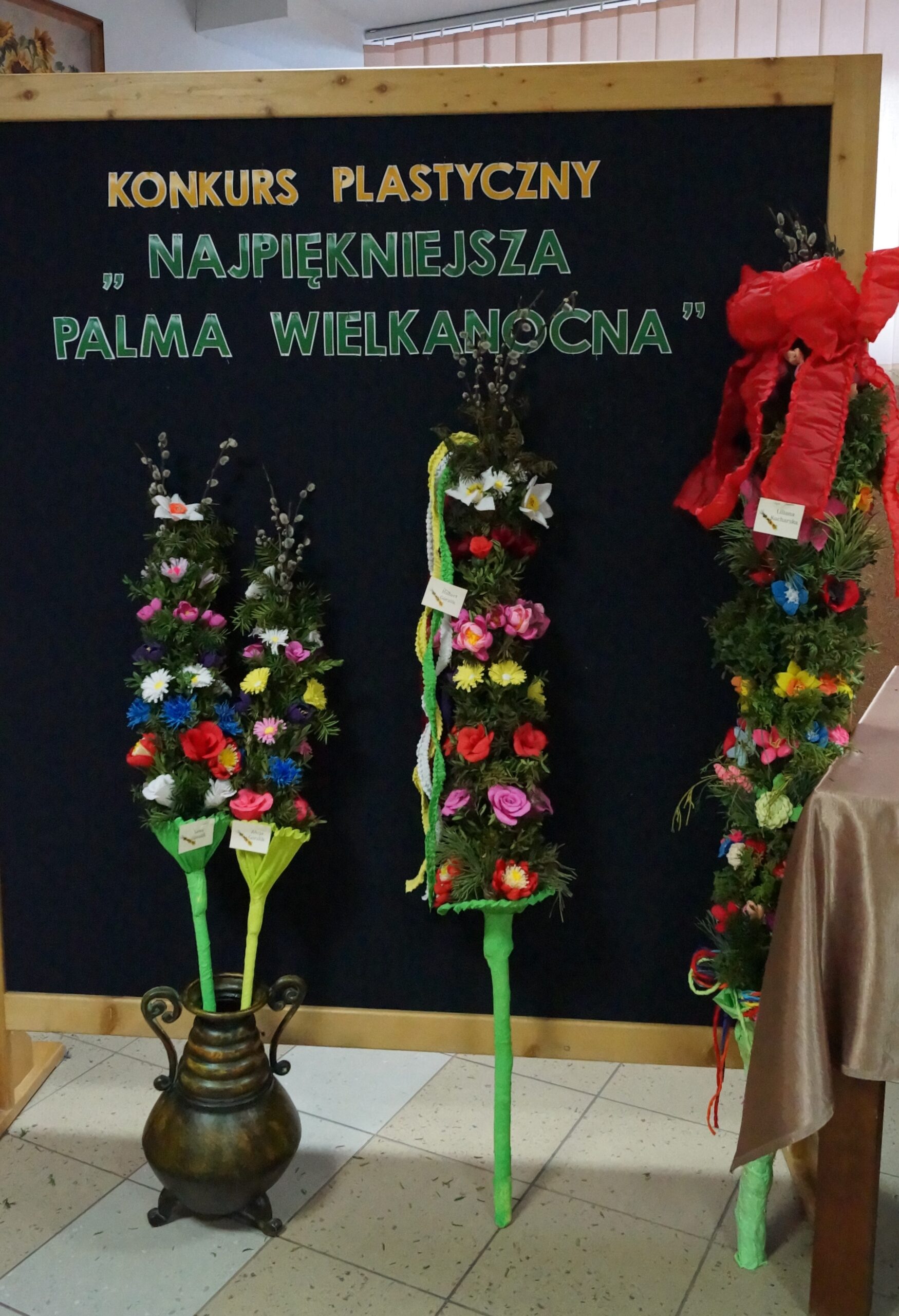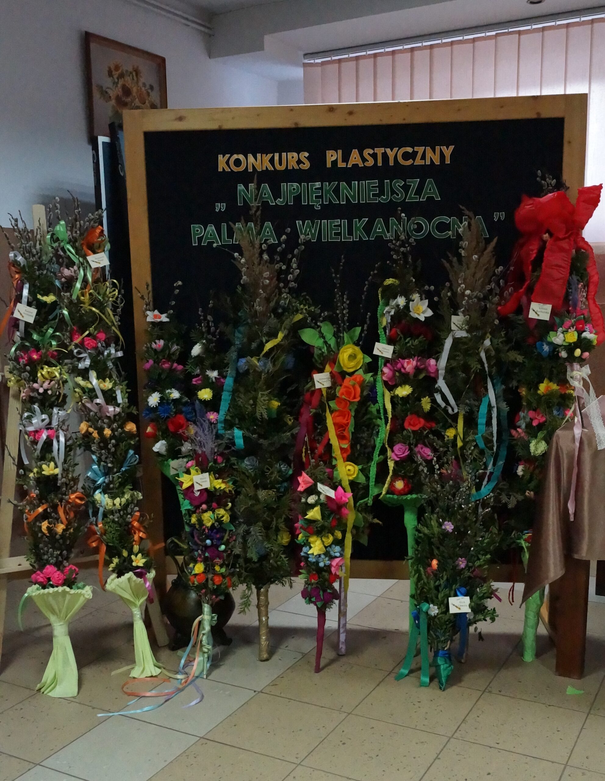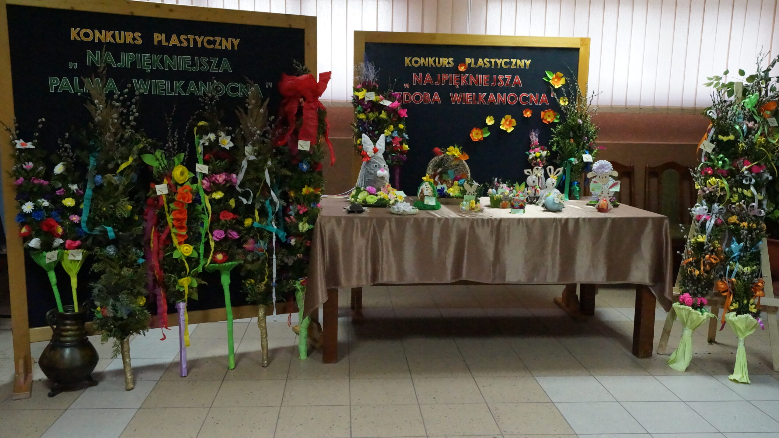 Uczestnicy konkursów wykazali się pomysłowością, wykorzystując różnorodne techniki i materiały. Powstały piękne wiosenno-świąteczne ozdoby. Pojawiły się kolorowe pisanki, wesołe zajączki czy  puchaty baranek. Natomiast palmy cechowały się starannością wykonania oraz nawiązaniem do tradycji naszego regionu- ozdobne kwiaty i wstążki wykonane ręcznie z bibuły i krepiny, a same palmy uwite przy użyciu wyłącznie naturalnych materiałów.