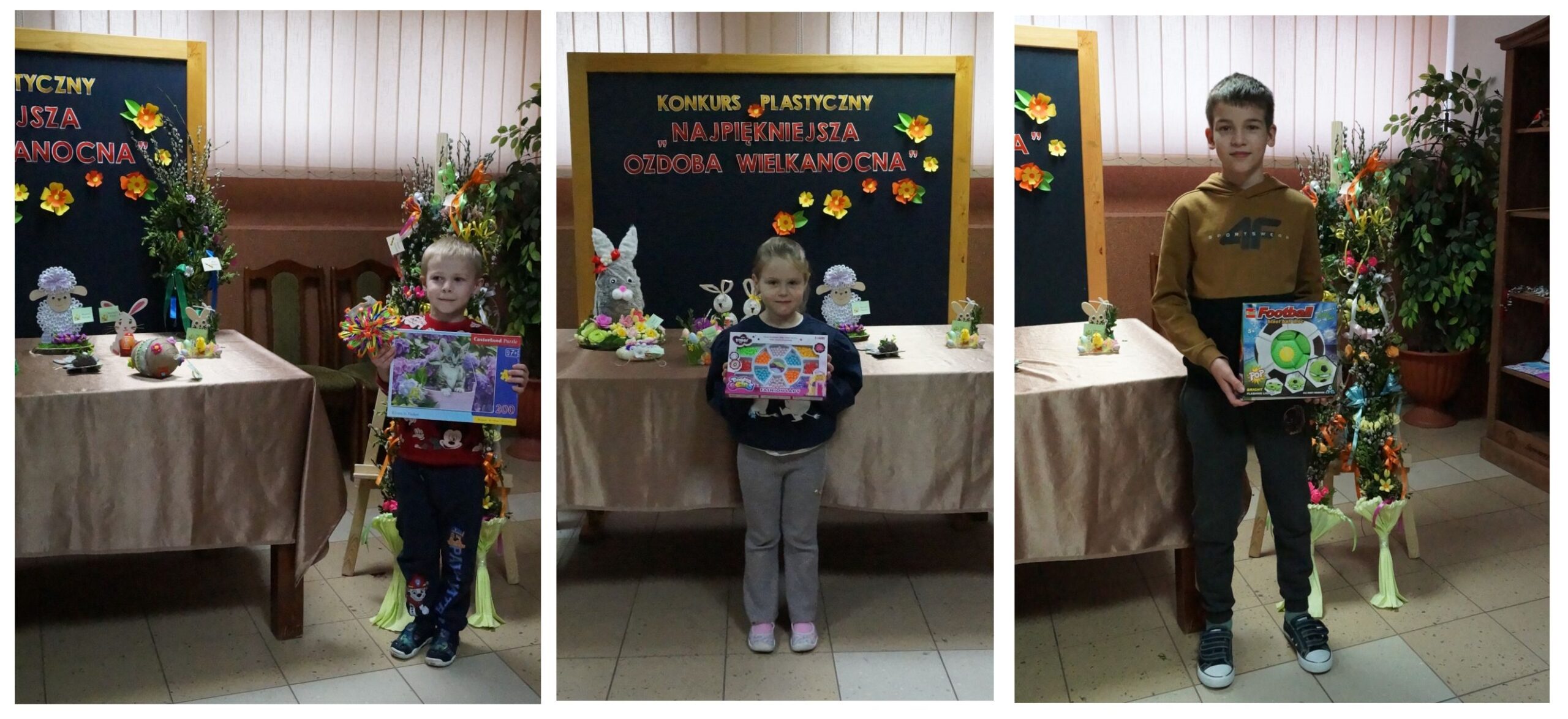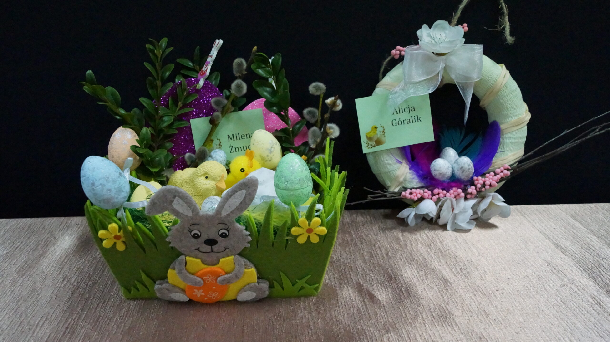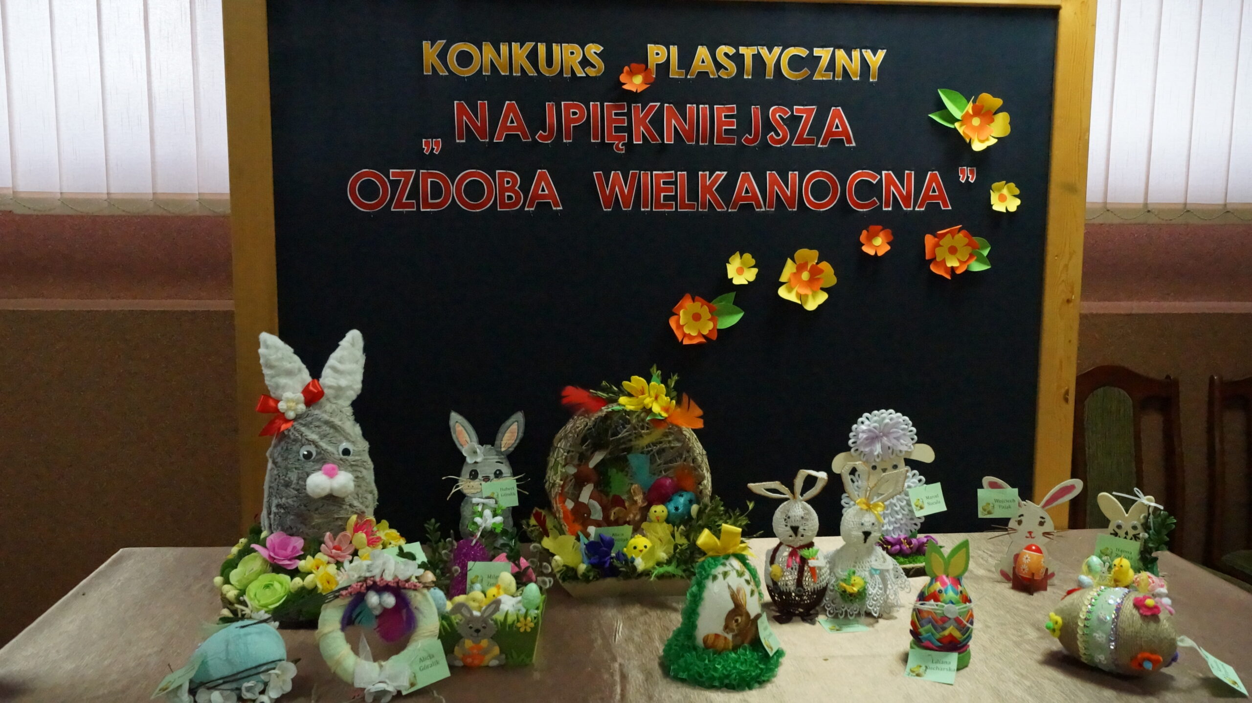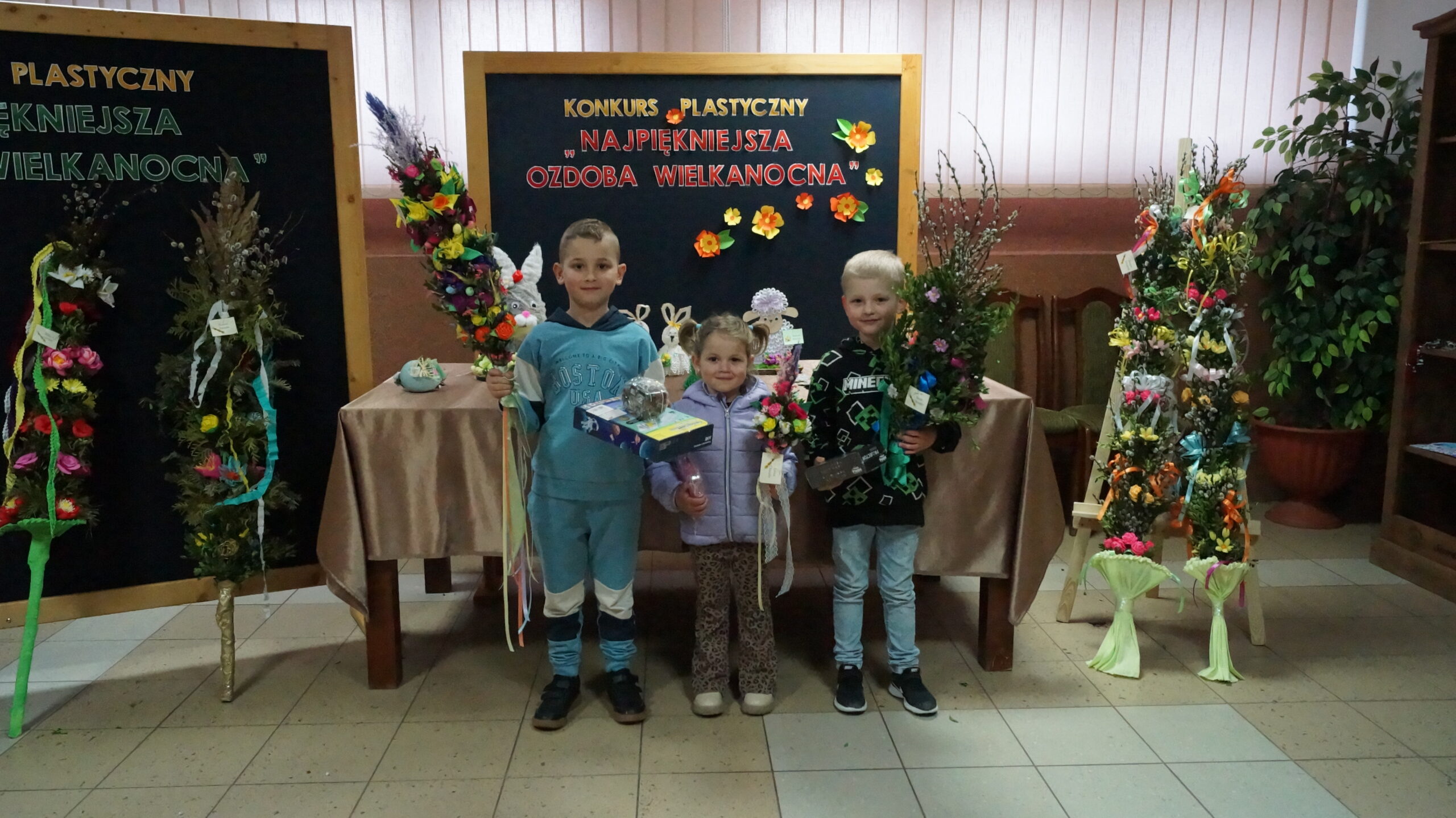 Uczestnicy konkursów wykazali się pomysłowością, wykorzystując różnorodne techniki i materiały. Powstały piękne wiosenno-świąteczne ozdoby. Pojawiły się kolorowe pisanki, wesołe zajączki czy  puchaty baranek. Natomiast palmy cechowały się starannością wykonania oraz nawiązaniem do tradycji naszego regionu- ozdobne kwiaty i wstążki wykonane ręcznie z bibuły i krepiny, a same palmy uwite przy użyciu wyłącznie naturalnych materiałów.