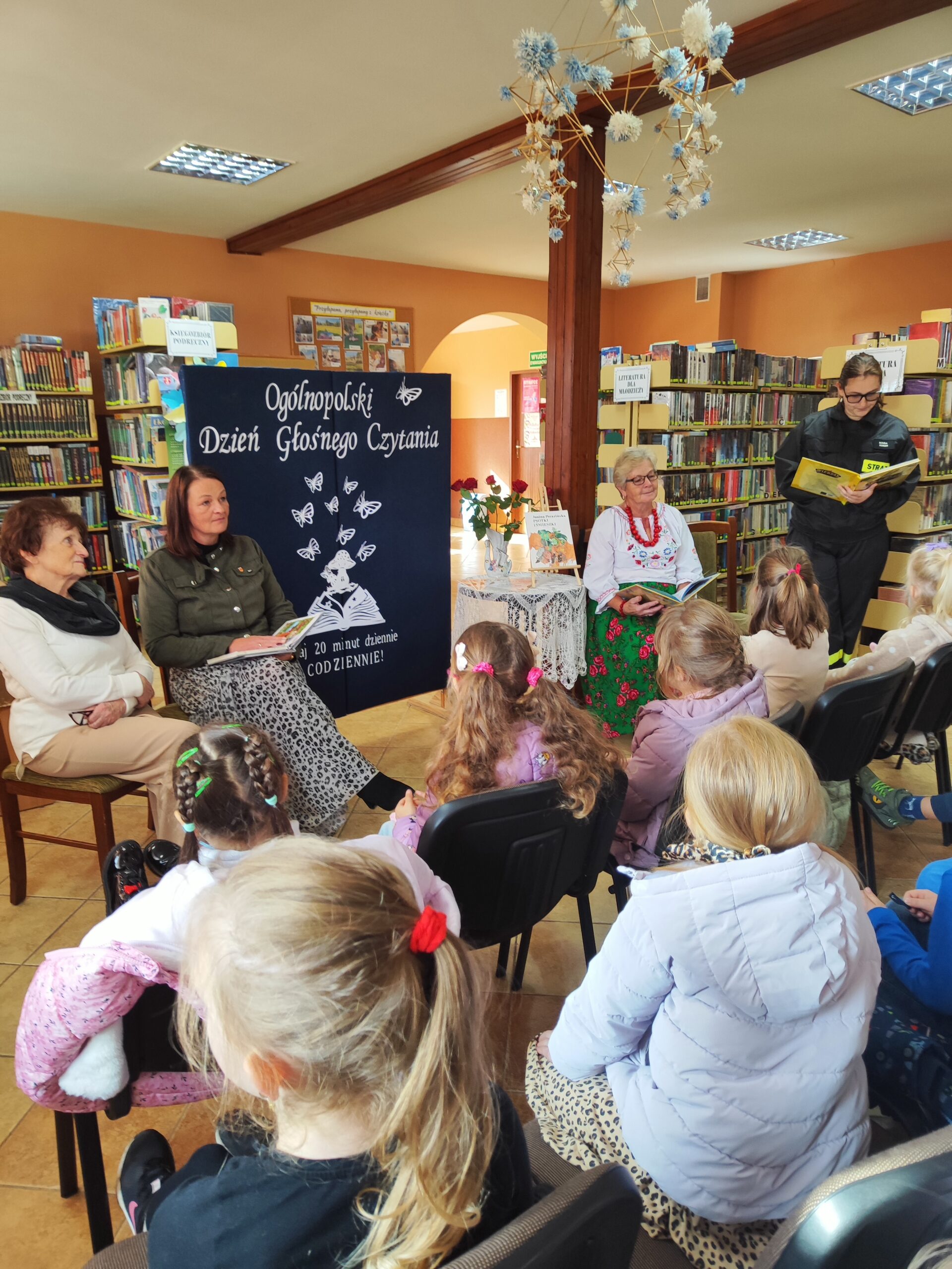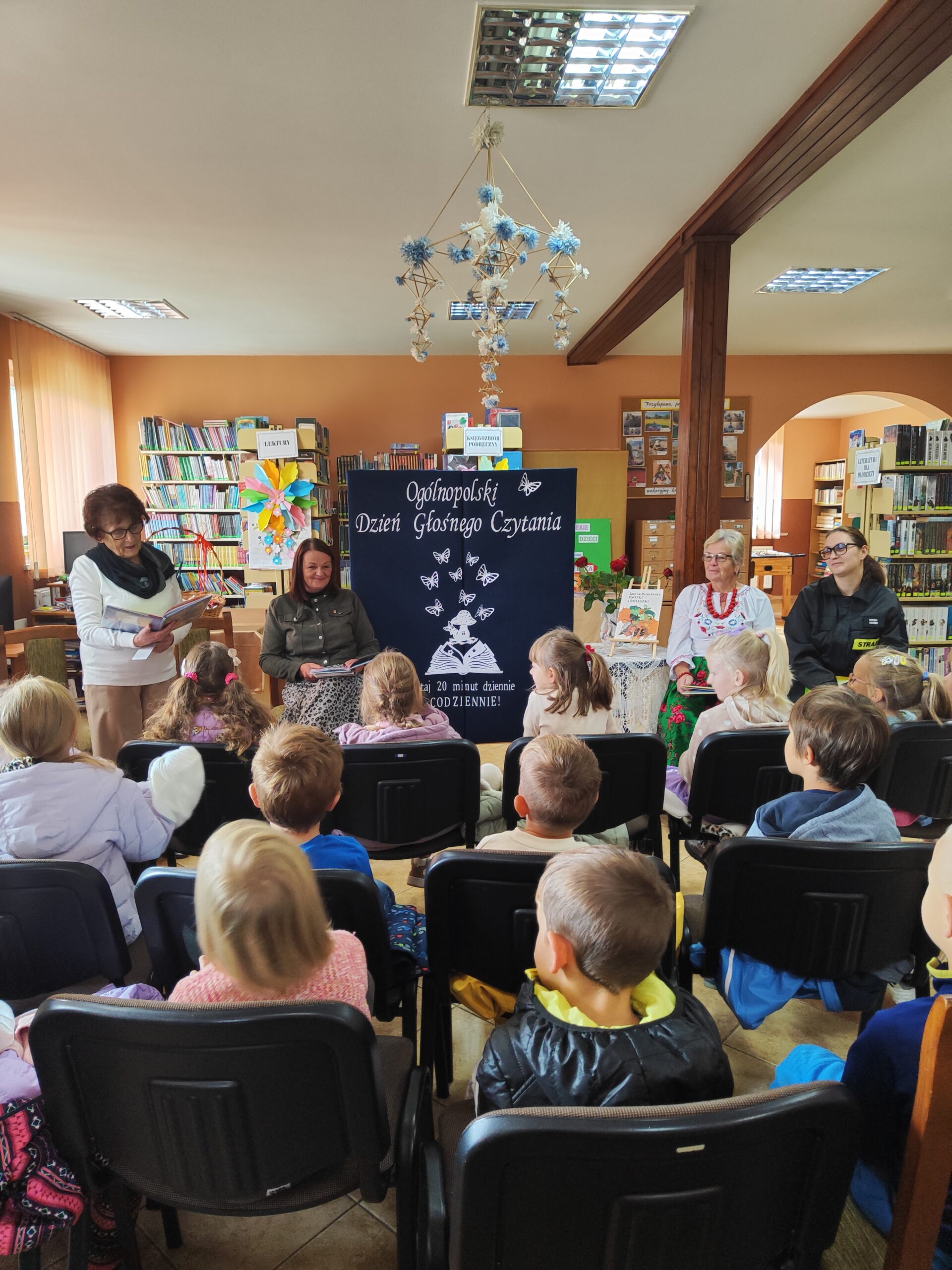 W dniu 2 października 2025r. w naszej bibliotece miało miejsce wielkie wydarzenie czytelnicze  zorganizowane w ramach  Ogólnopolskiego Dnia Głośnego Czytania. Jest to jedno z tych wydarzeń w kalendarzu świąt nietypowych, które są zarówno przyjemne jak i pożyteczne. Inicjatywa powstała w Polskiej Izbie Książki w 2001 roku. Patronką wybrano Janinę Porazińską, wybitną pisarkę która pisała wyłącznie dla dzieci i o dzieciach. Data 29 września to dzień urodzin zasłużonej Polki. W tym pięknym wydarzeniu wzięli udział zaproszeni goście: Cecylia Polak – Przewodnicząca KGW w Bieńkówce i Radna Gminy Budzów, Barbara Sala – Sołtys wsi Bieńkówka, Maria Polak – przedstawicielka OSP Bieńkówka, Krystyna Szczepaniak – emerytowana nauczycielka oraz najmłodsi czytelnicy  – dwie grupy przedszkolaków. Tegoroczny Dzień Głośnego Czytania odbył się pod hasłem: „Wielcy Poeci piszą wiersze dla dzieci”, w związku z tym nasi goście czytali dzieciom najbardziej znane i lubiane wiersze takich poetów jak: Janina Porazińska, Maria Konopnicka, Jan Brzechwa, Julian Tuwim, Aleksander Fredro, Wanda Chotomska i Jan Kazimierz Siwek.