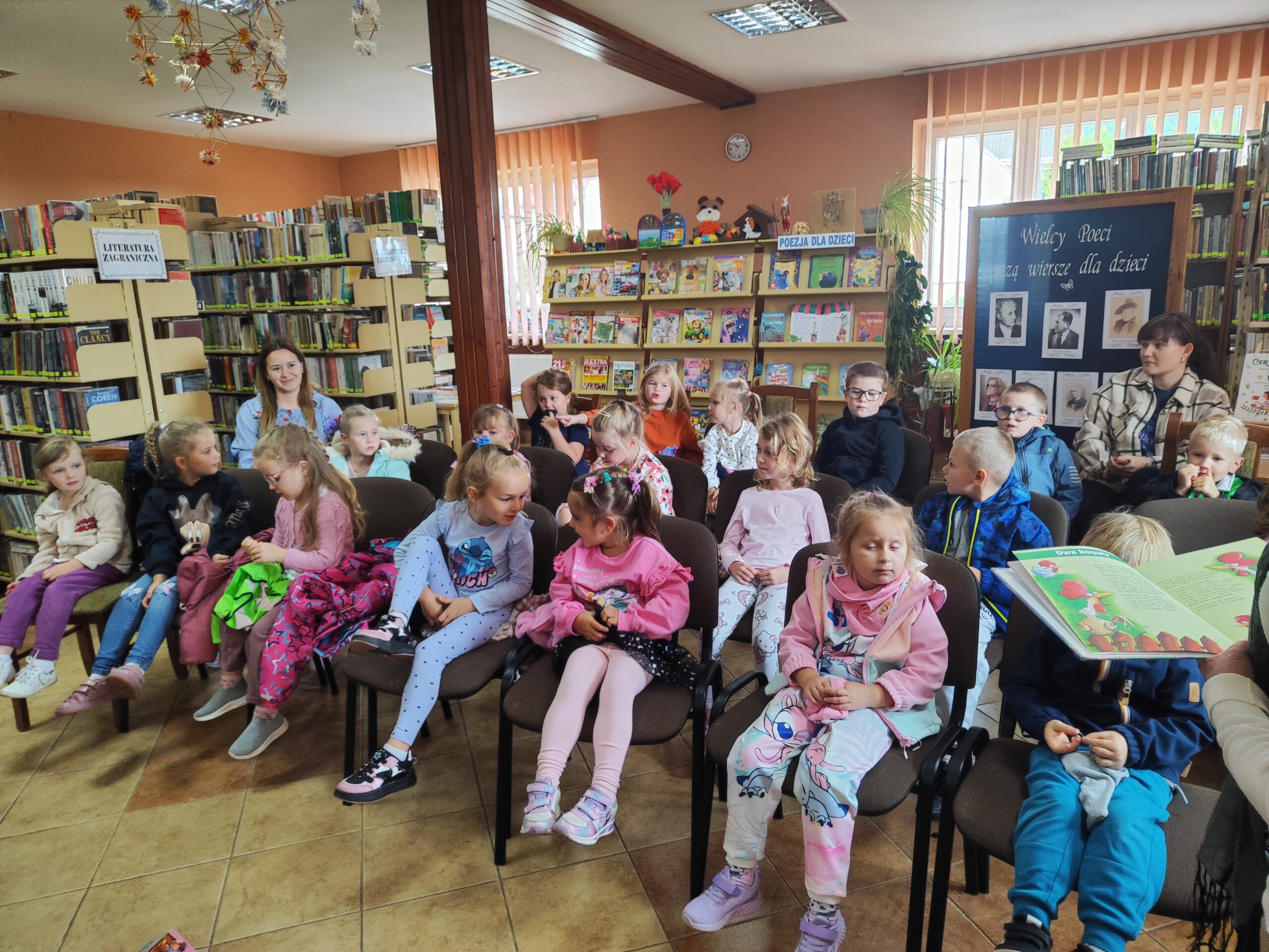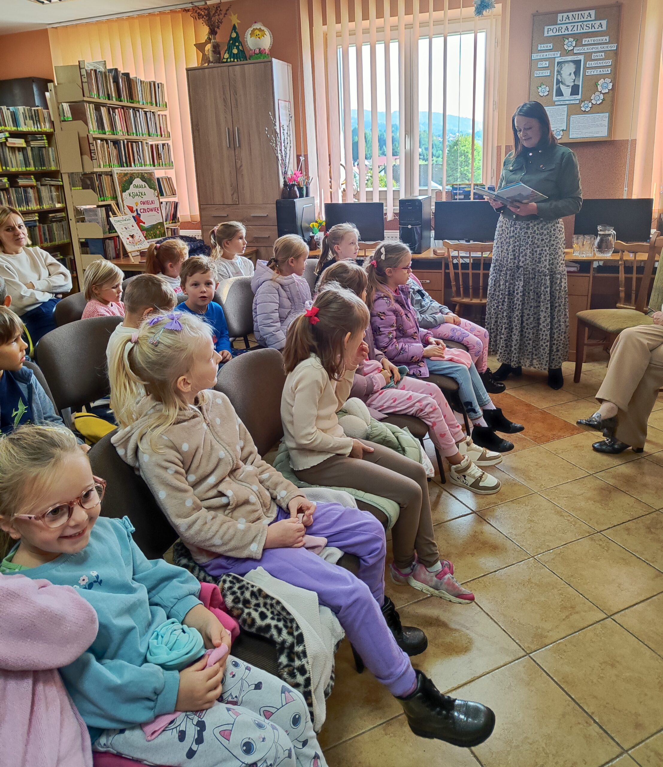 Wydarzenie czytelnicze  rozpoczęła pani bibliotekarka wierszem Janiny Porazińskiej pt. „Bajka iskierki”. Wiersze „Okulary”, „Stefek Burczymucha” czy „Paweł i Gaweł” wywoływały salwy śmiechu u dzieci, co świadczyło o świetnej zabawie i właściwym wyborze literatury.