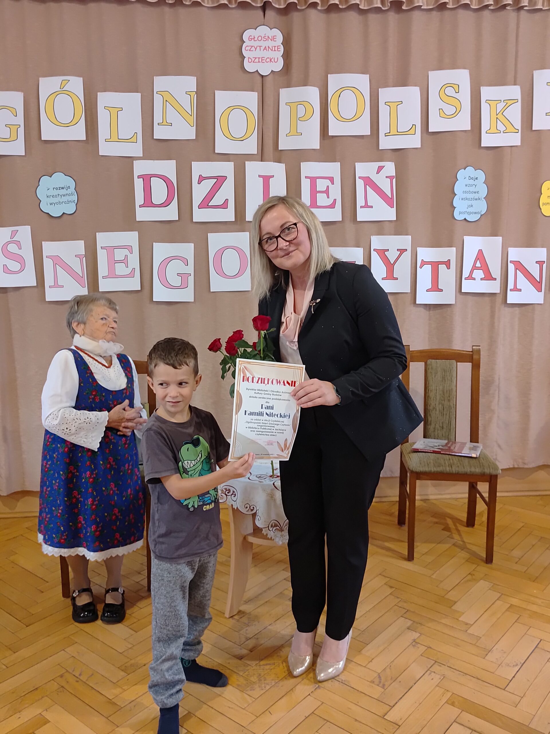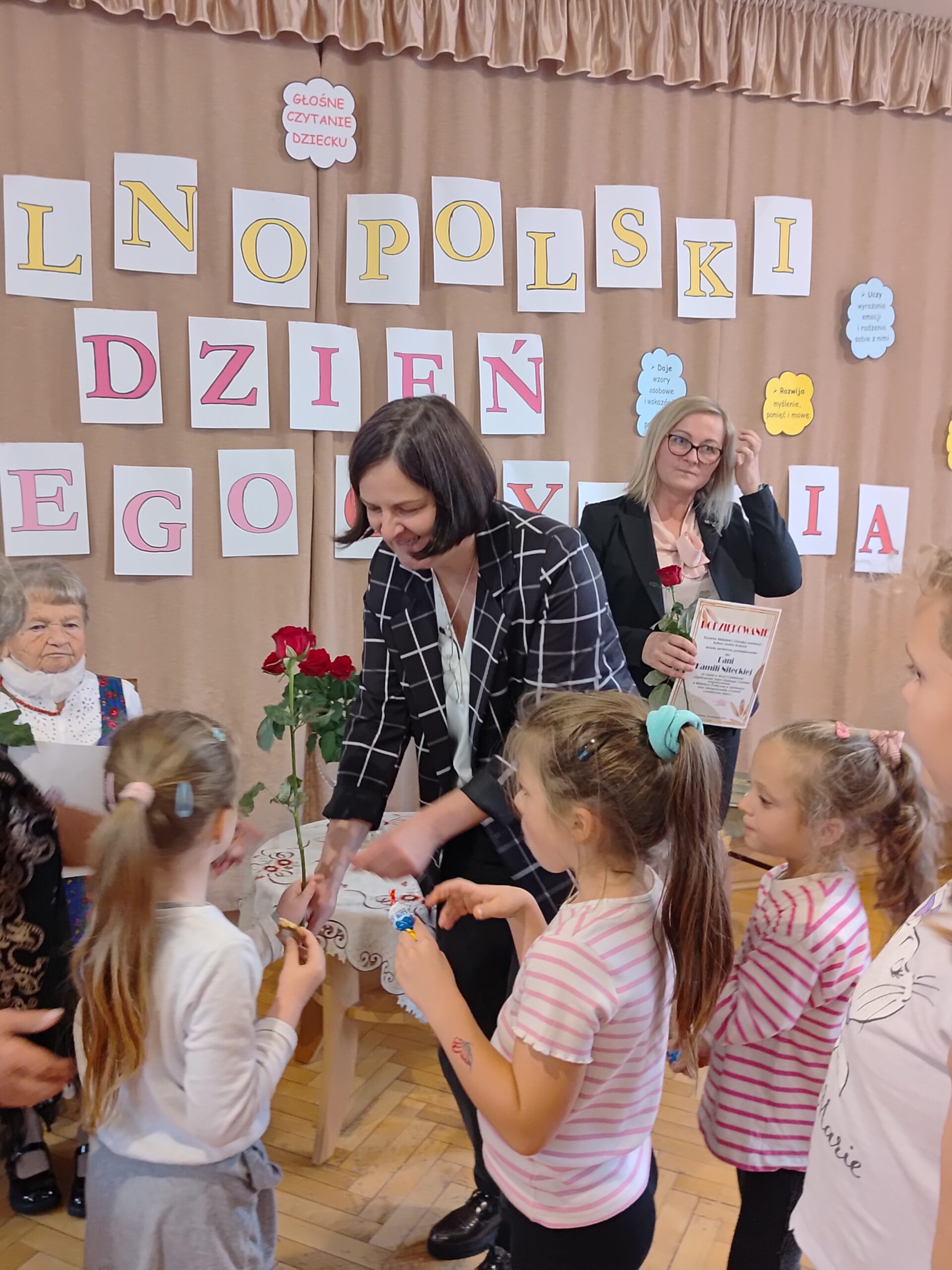 Po czytaniu Panie otrzymały od dzieci czerwone róże i piękne podziękowanie, a na zakończenie zaproszono dzieci wraz z towarzyszącymi rodzicami na słodki poczęstunek.