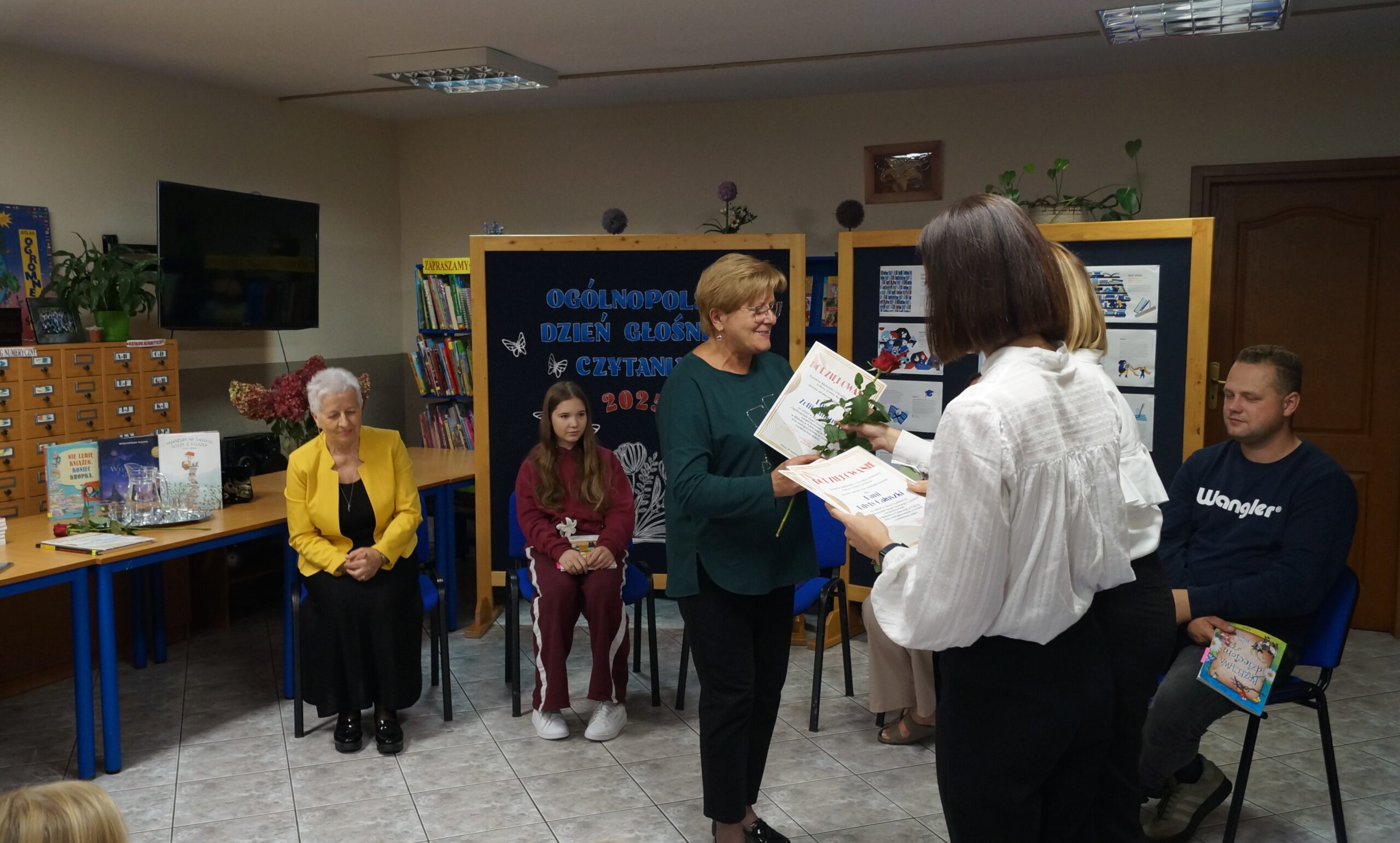 Podsumowując akcje bibliotekarze przedstawili wartość czytania książek i zachęcali do wspólnego czytania dla dzieci. Na zakończenie w imieniu Dyrektora Biblioteki i Ośrodka Animacji Kultury Gminy Budzów – Pani Danuty Kawy wręczono gościom kwiaty i podziękowania za udział w akcji „Ogólnopolskiego Dnia Głośnego Czytania” oraz za zaangażowanie w rozwój czytelnictwa dzieci. Następnie podziękowali małym czytelnikom za wysłuchanie wierszy i aktywny udział w spotkaniu oraz wręczyli wszystkim słodkości.