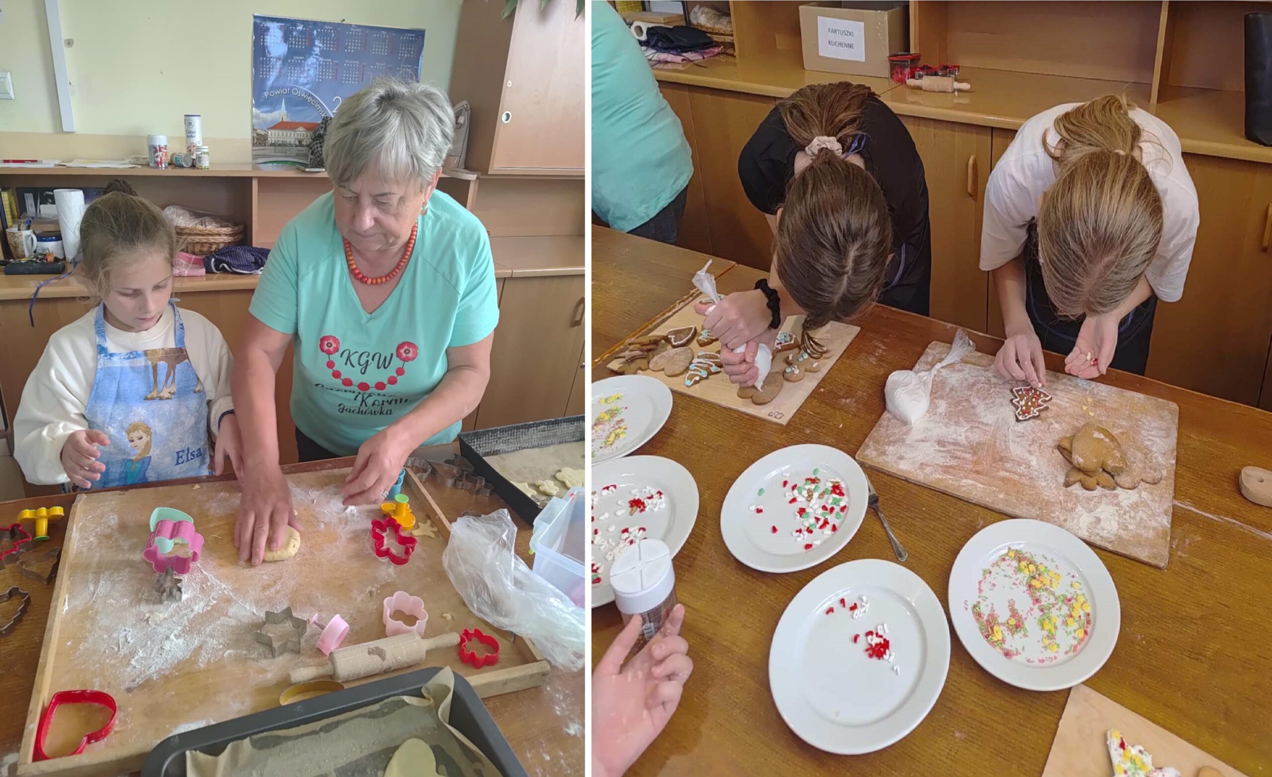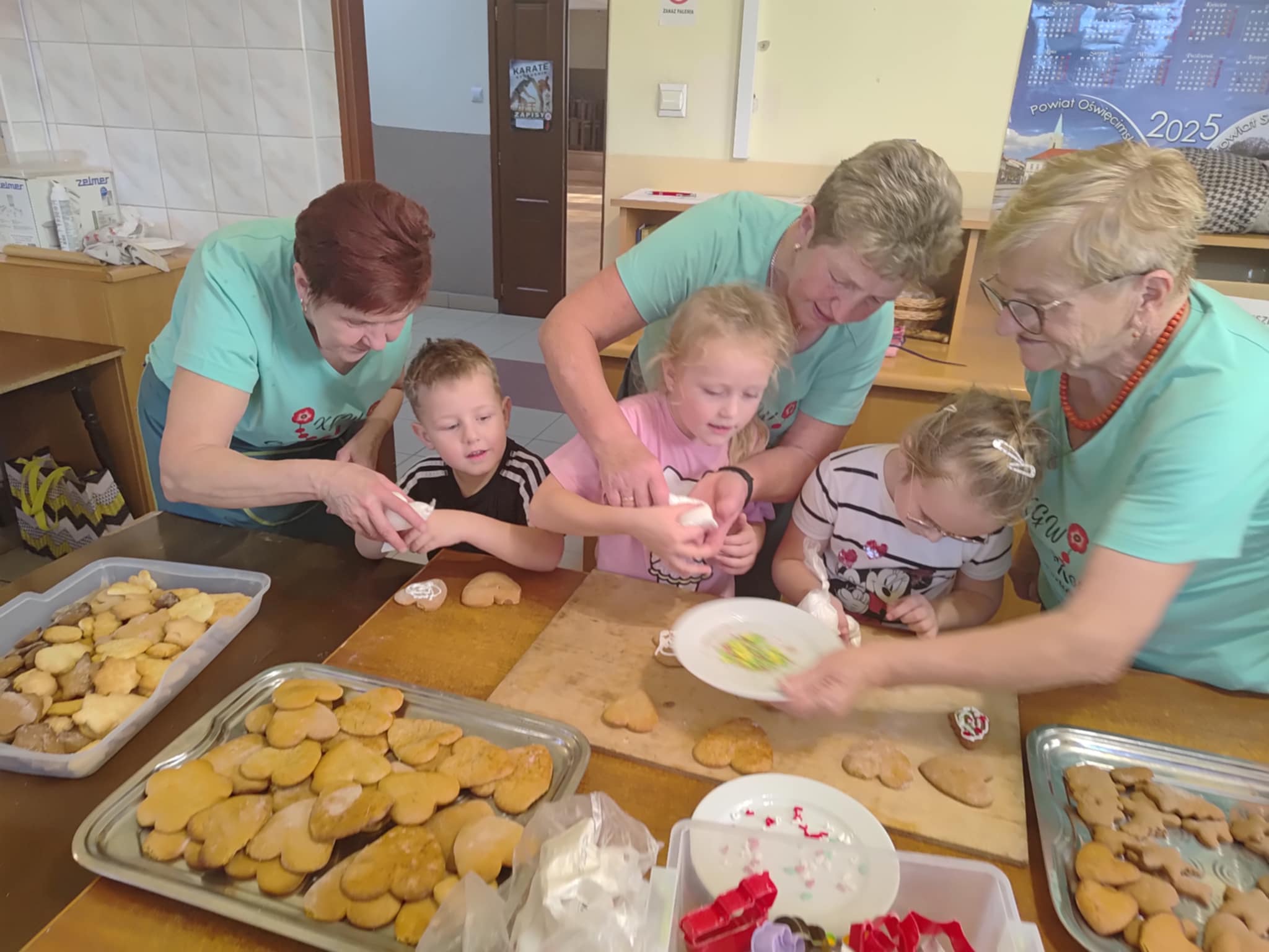 W dniu 5 listopada 2025 r. dzieci z Klubu Przyjaciół Biblioteki Publicznej w Jachówce wraz z Paniami z Koła Gospodyń Wiejskich „Czerwone Korale” w Jachówce wspólnie upiekły pyszne ciasteczka i dekorowały pierniczki o świątecznych kształtach – gwiazdek, choinek, bałwanków, św. Mikołajów, itp. Pod okiem naszych miłych Pań, dzieci dekorowały wypieczone smakołyki białym lukrem  i posypkami cukrowymi, tworząc  tym samym małe świąteczne dzieła sztuki !!!