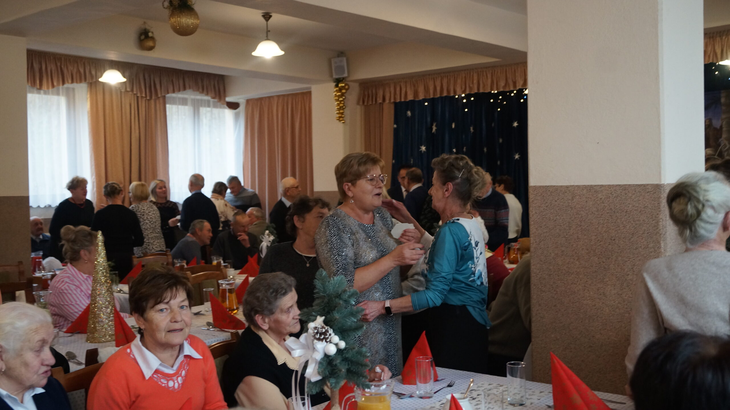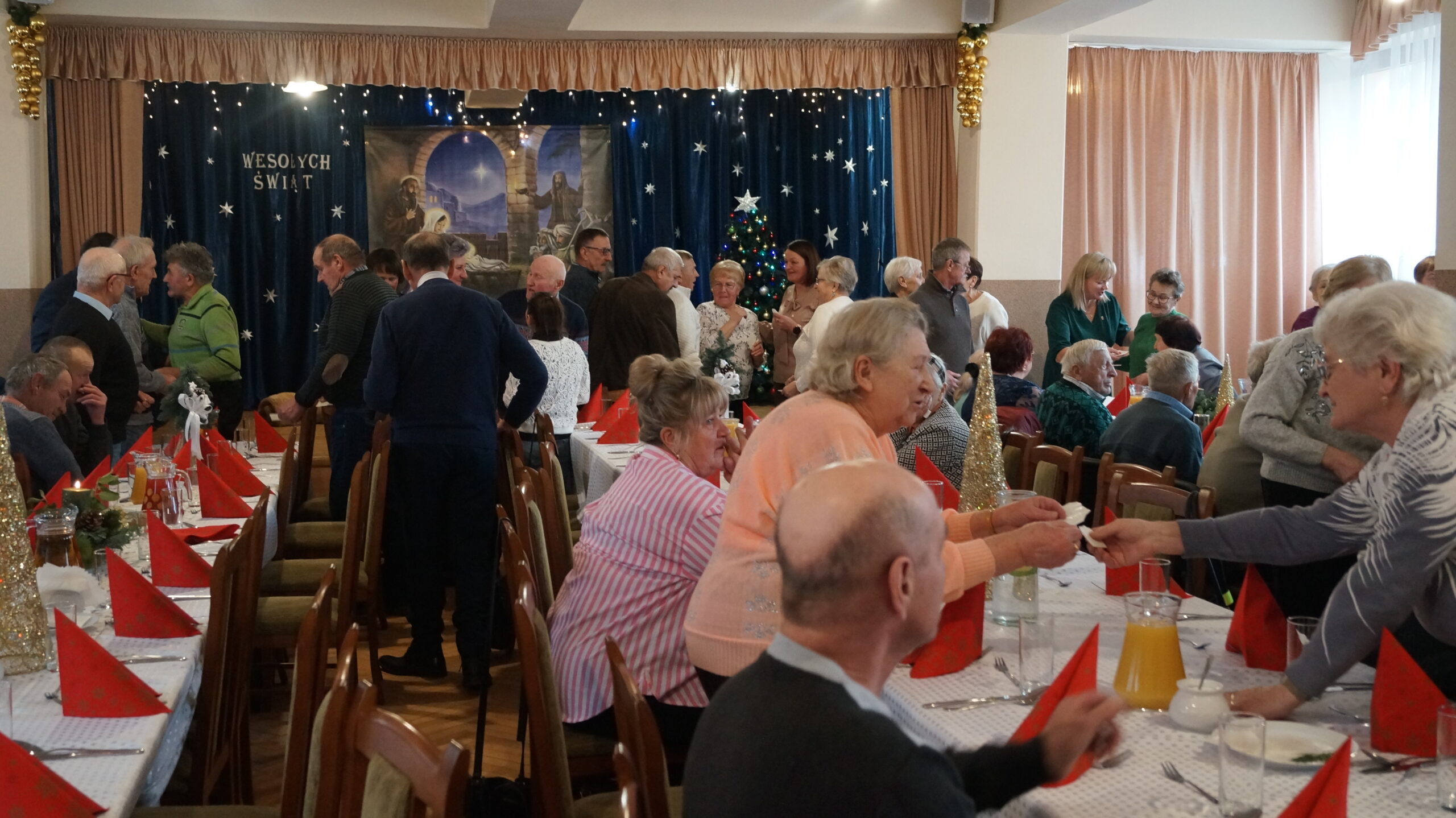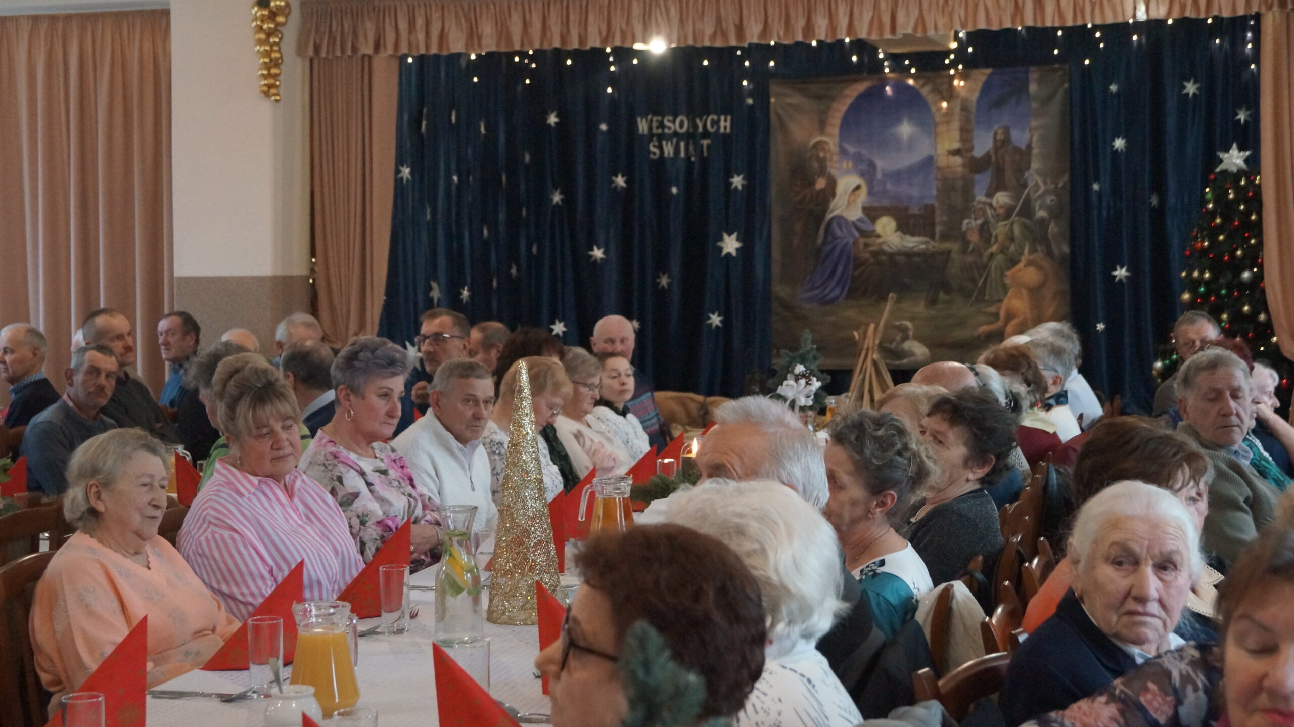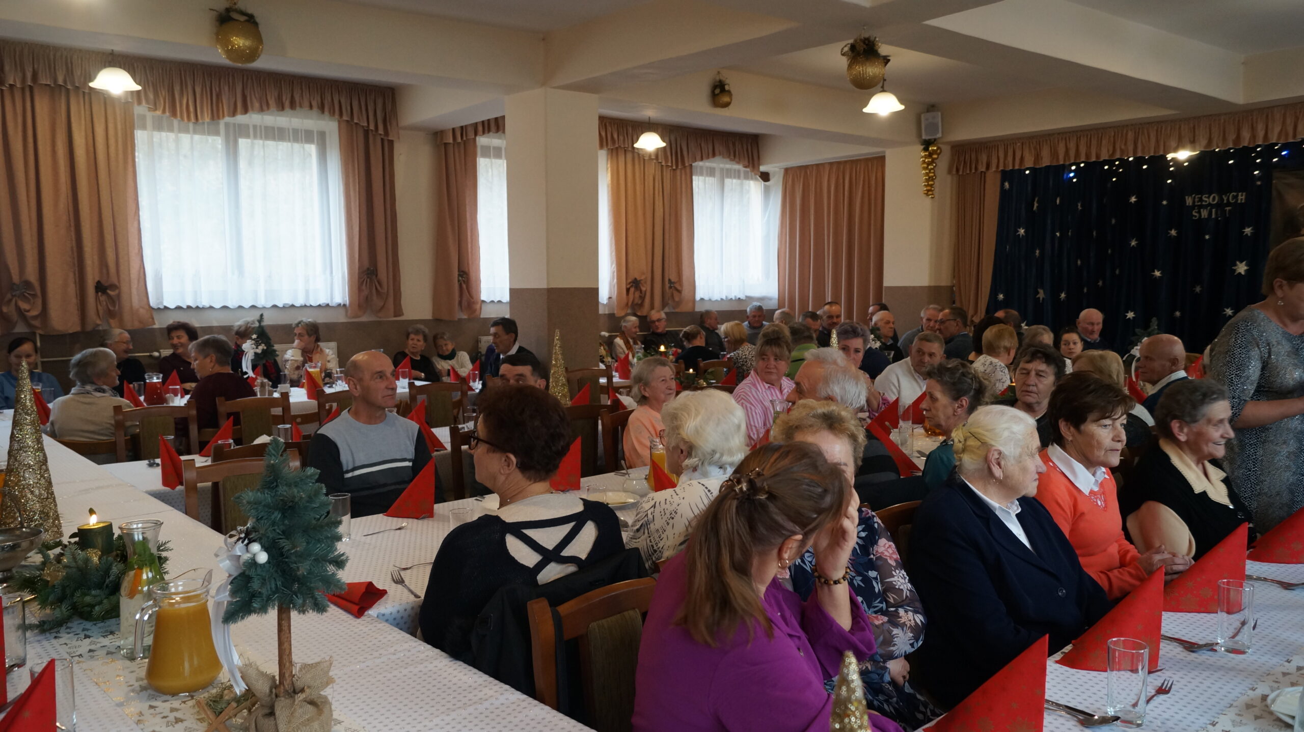 W  dniu 18 grudnia 2025 r. w Bibliotece i Ośrodku Animacji Kultury Gminy Budzów w Jachówce odbyło się Spotkanie Wigilijne dla osób Samotnych mieszkających na terenie Gminy Budzów. Zebrani goście najpierw wspólnie ubrali choinkę, następnie wszystkich przywitała Pani Danuta Kawa– Dyrektor Biblioteki i Ośrodka Animacji Kultury Gminy Budzów, głos zabrał również Pan Jan Najdek – Wójt Gminy Budzów oraz Pani Kamila Nitecka – Przewodnicząca Rady Gminy. Proboszcz Parafii w Jachówce Ks. Mariusz Mendyk pobłogosławił opłatki i złożył wszystkim gościom serdeczne życzenia. Następnie nadszedł czas na  wspólne życzenia i łamanie się opłatkiem.  Zebrani gości zasiedli do stołu by wspólnie zjeść tradycyjny obiad wigilijny. W kolejnej części spotkania na scenę zawitał zespół regionalny „Budzowskie Kliszczaki” z gwiazdą.  Po występie na salę przybył Święty Mikołaj by wręczyć gościom świąteczne prezenty. To wyjątkowe spotkanie wprawiło wszystkich zebranych gości w chwilę zadumy i świąteczny nastrój.