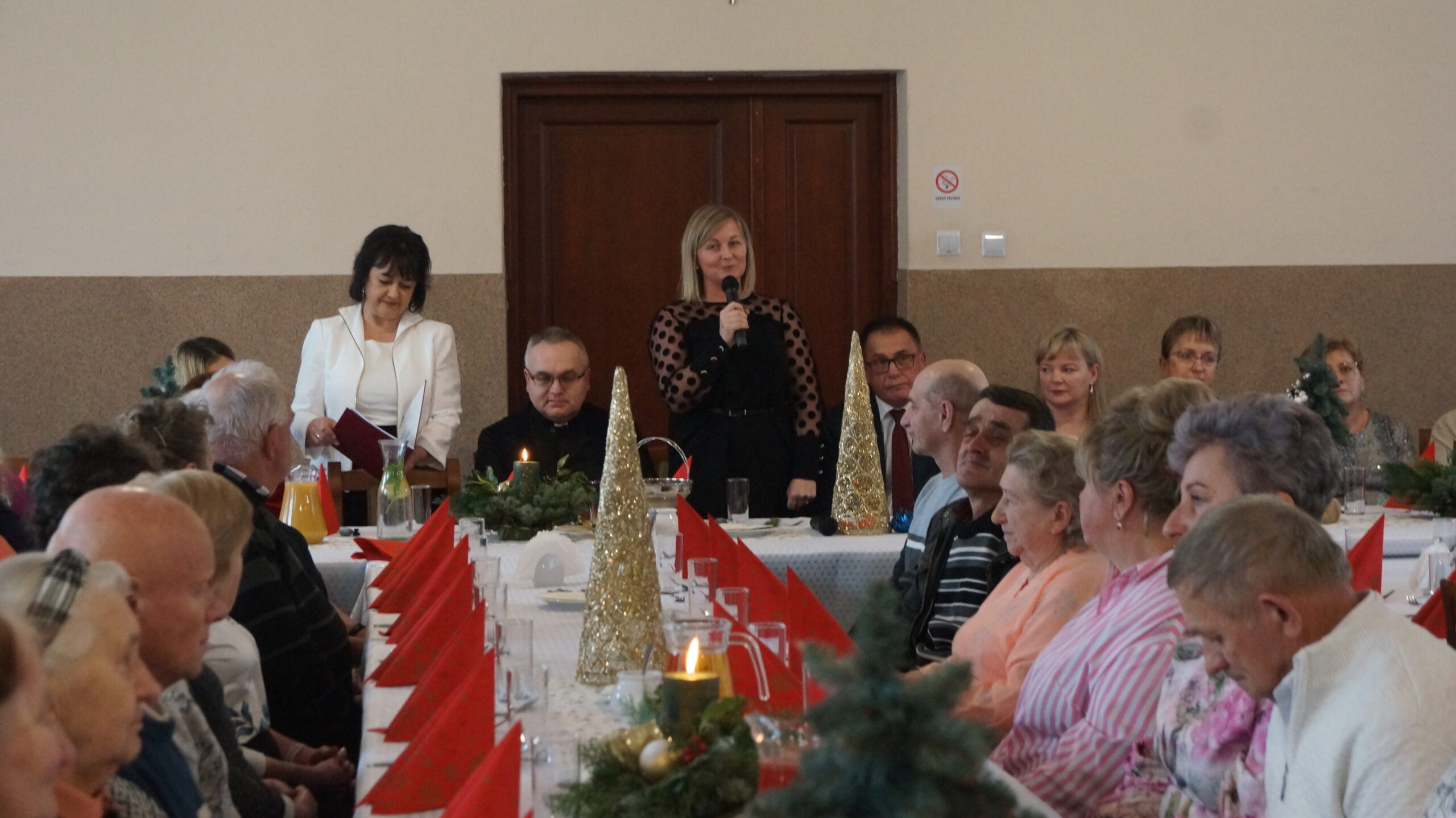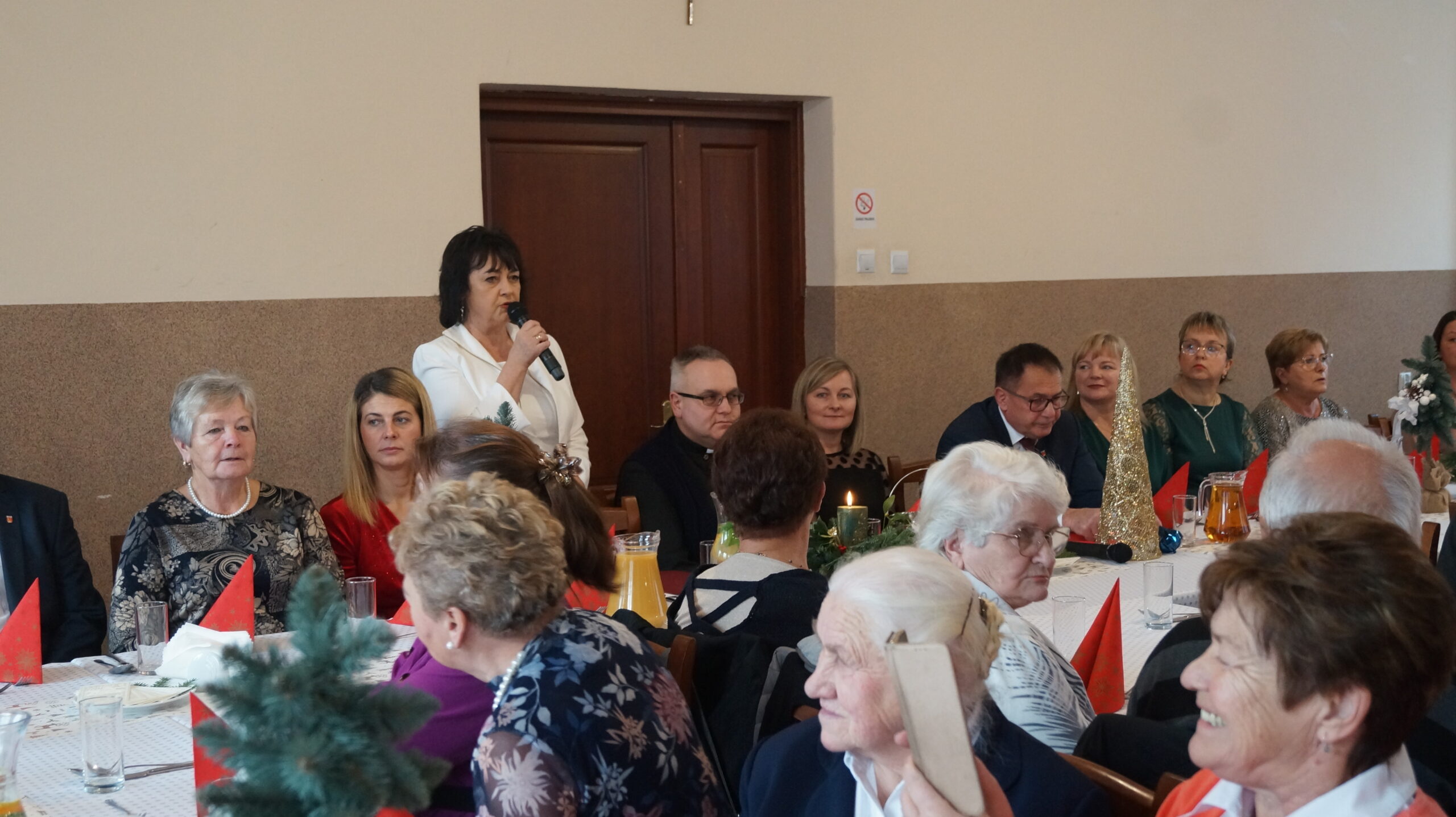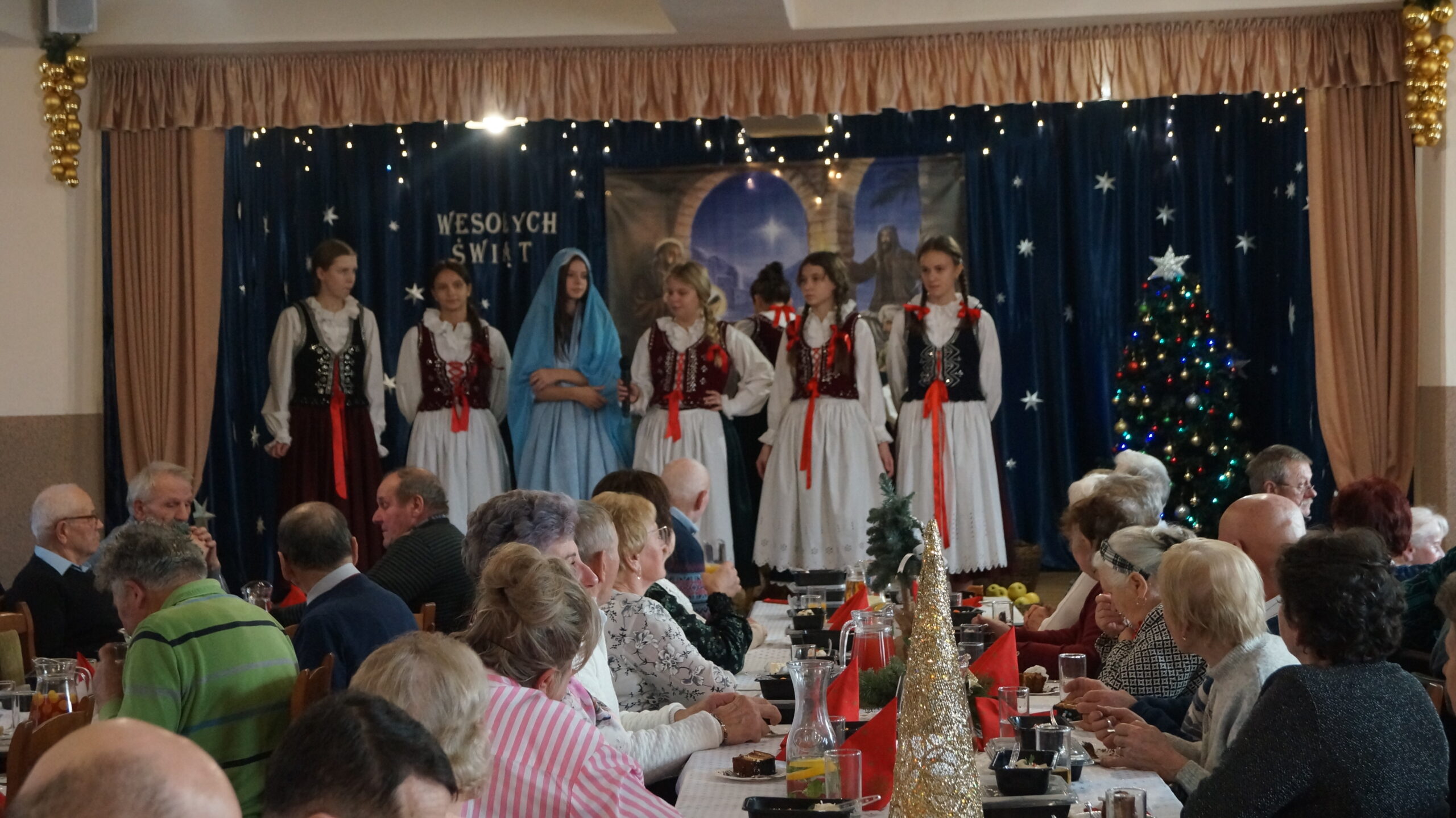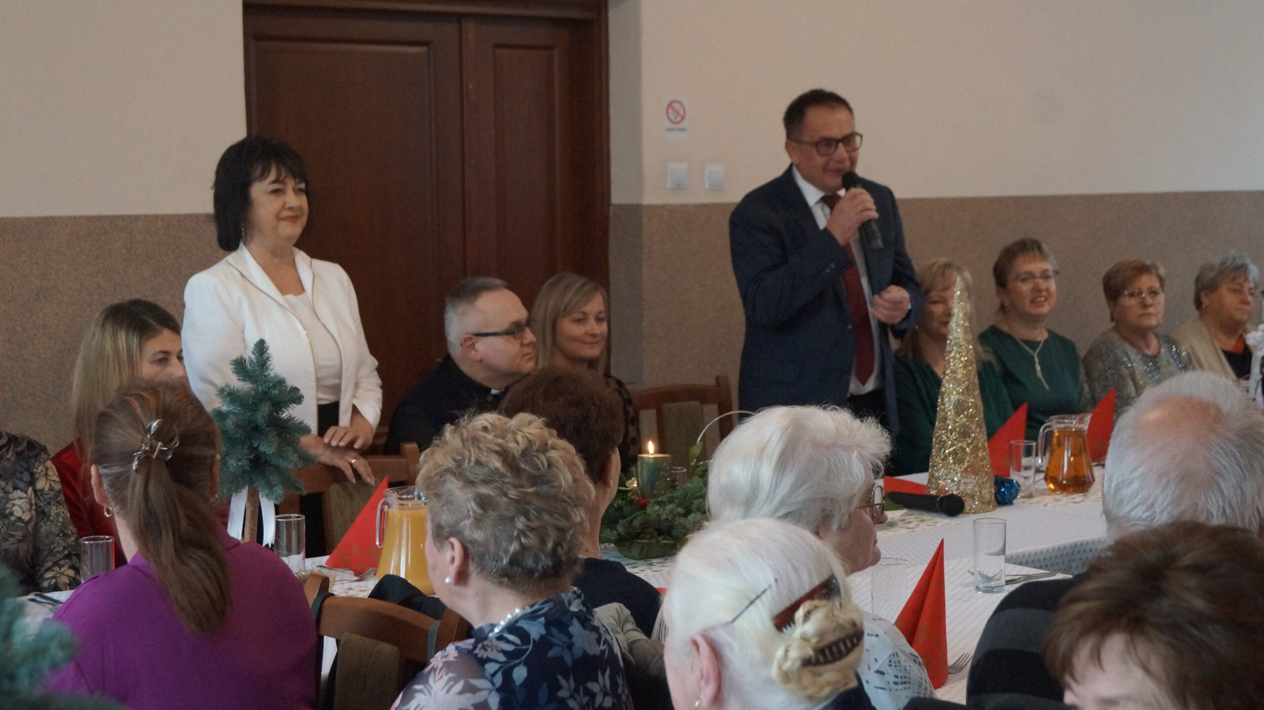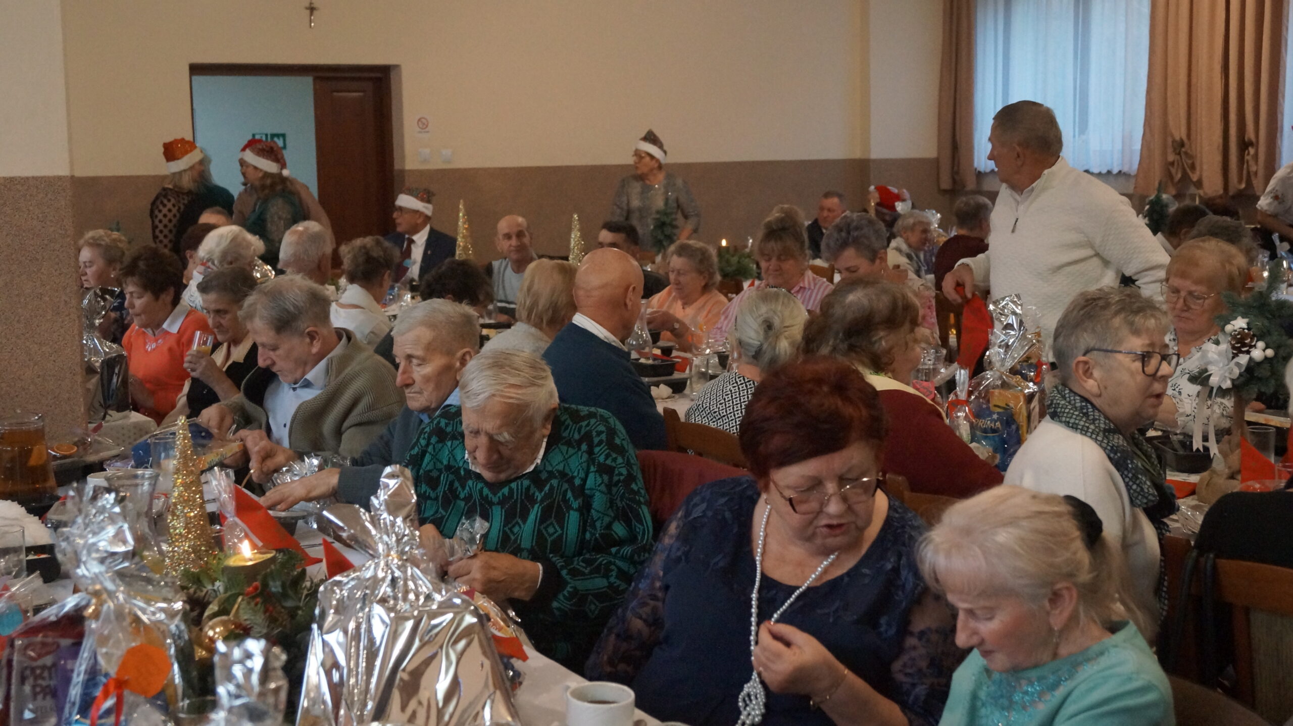W  dniu 18 grudnia 2025 r. w Bibliotece i Ośrodku Animacji Kultury Gminy Budzów w Jachówce odbyło się Spotkanie Wigilijne dla osób Samotnych mieszkających na terenie Gminy Budzów. Zebrani goście najpierw wspólnie ubrali choinkę, następnie wszystkich przywitała Pani Danuta Kawa– Dyrektor Biblioteki i Ośrodka Animacji Kultury Gminy Budzów, głos zabrał również Pan Jan Najdek – Wójt Gminy Budzów oraz Pani Kamila Nitecka – Przewodnicząca Rady Gminy. Proboszcz Parafii w Jachówce Ks. Mariusz Mendyk pobłogosławił opłatki i złożył wszystkim gościom serdeczne życzenia. Następnie nadszedł czas na  wspólne życzenia i łamanie się opłatkiem.  Zebrani gości zasiedli do stołu by wspólnie zjeść tradycyjny obiad wigilijny. W kolejnej części spotkania na scenę zawitał zespół regionalny „Budzowskie Kliszczaki” z gwiazdą.  Po występie na salę przybył Święty Mikołaj by wręczyć gościom świąteczne prezenty. To wyjątkowe spotkanie wprawiło wszystkich zebranych gości w chwilę zadumy i świąteczny nastrój.