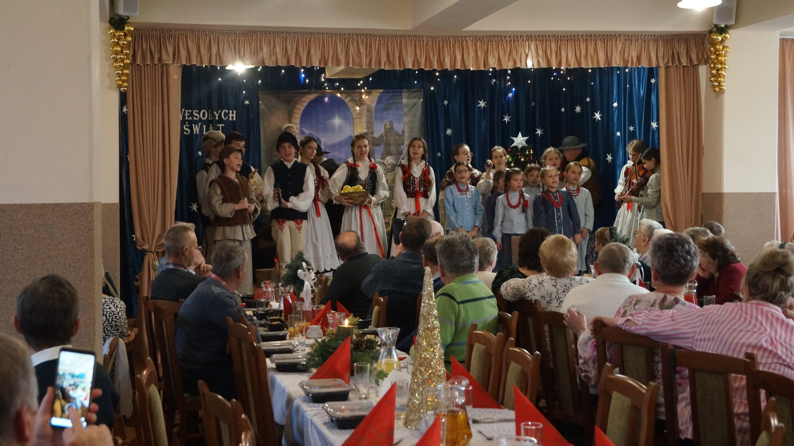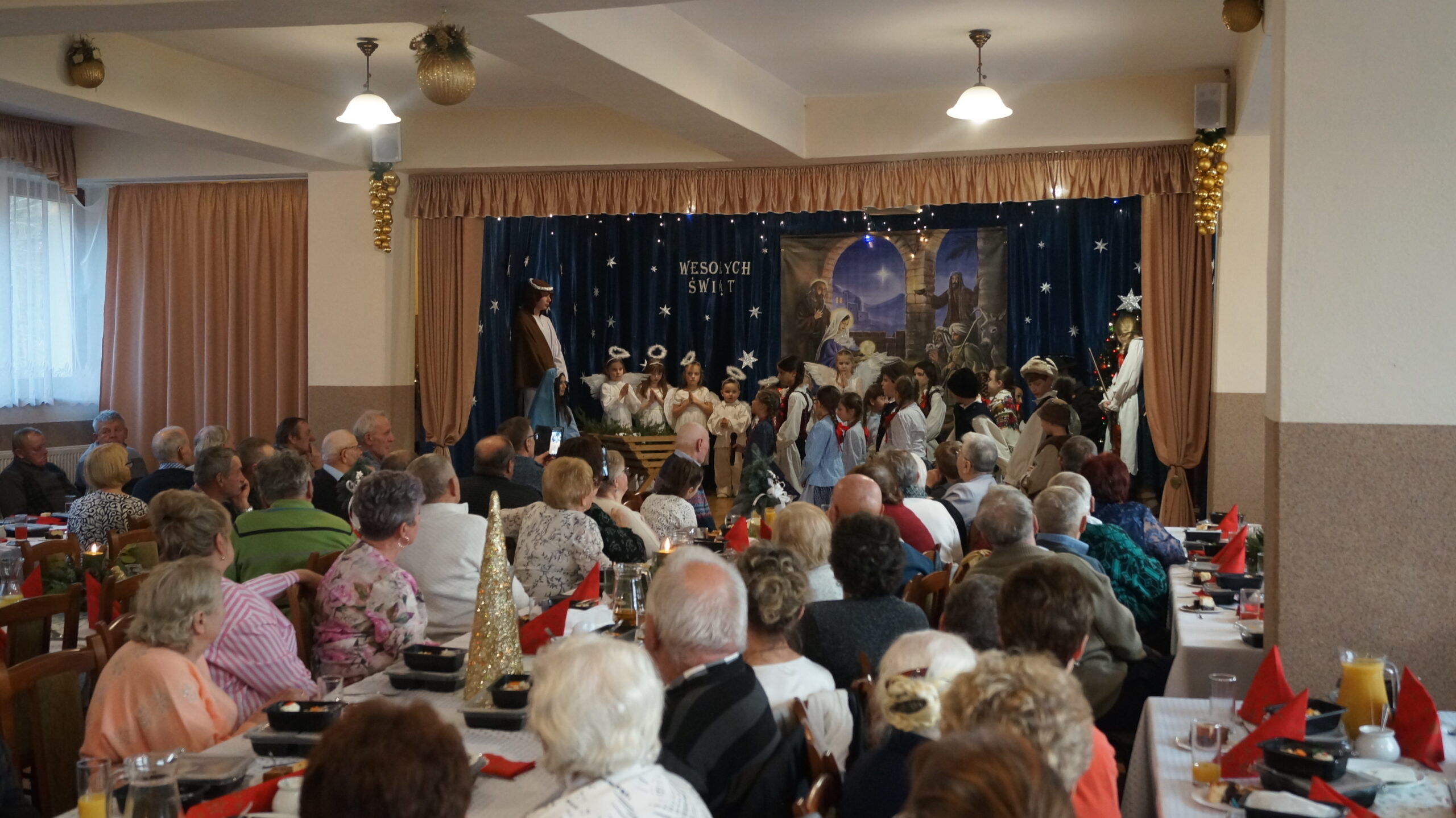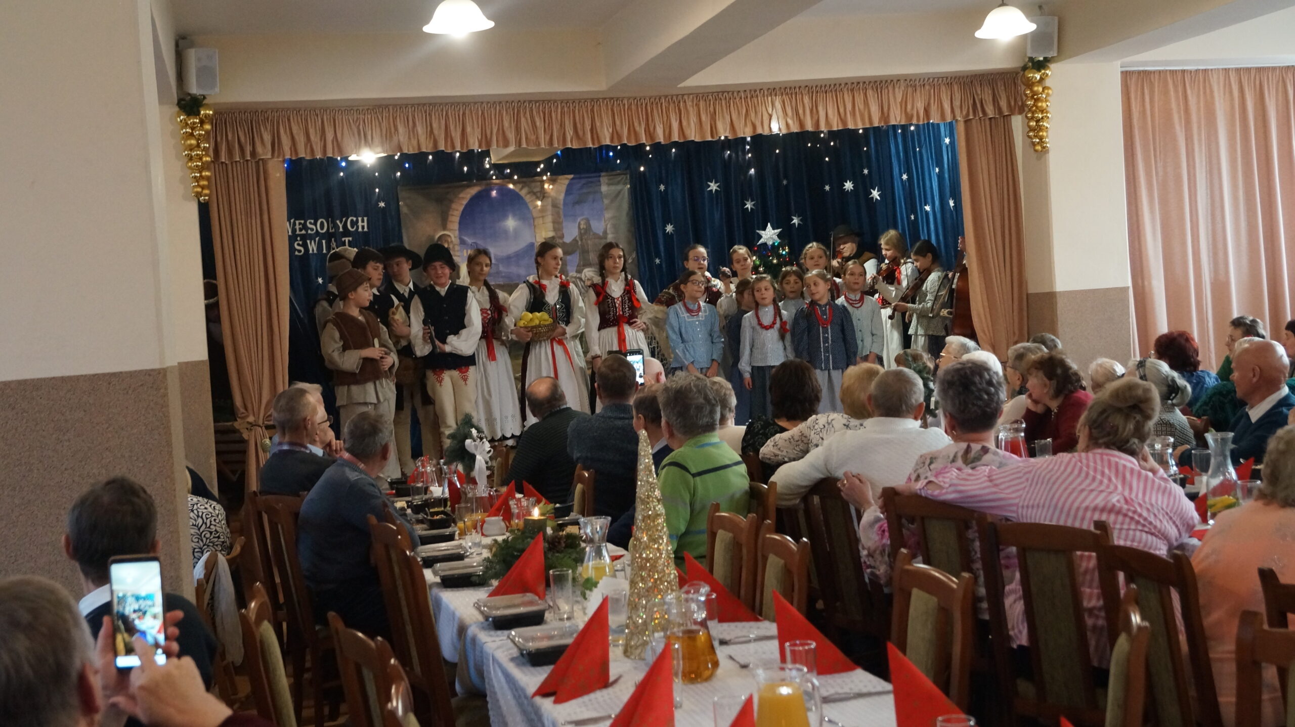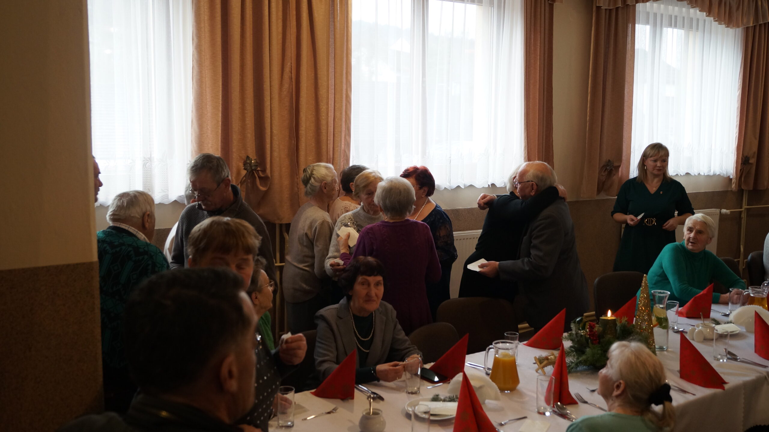 W  dniu 18 grudnia 2025 r. w Bibliotece i Ośrodku Animacji Kultury Gminy Budzów w Jachówce odbyło się Spotkanie Wigilijne dla osób Samotnych mieszkających na terenie Gminy Budzów. Zebrani goście najpierw wspólnie ubrali choinkę, następnie wszystkich przywitała Pani Danuta Kawa– Dyrektor Biblioteki i Ośrodka Animacji Kultury Gminy Budzów, głos zabrał również Pan Jan Najdek – Wójt Gminy Budzów oraz Pani Kamila Nitecka – Przewodnicząca Rady Gminy. Proboszcz Parafii w Jachówce Ks. Mariusz Mendyk pobłogosławił opłatki i złożył wszystkim gościom serdeczne życzenia. Następnie nadszedł czas na  wspólne życzenia i łamanie się opłatkiem.  Zebrani gości zasiedli do stołu by wspólnie zjeść tradycyjny obiad wigilijny. W kolejnej części spotkania na scenę zawitał zespół regionalny „Budzowskie Kliszczaki” z gwiazdą.  Po występie na salę przybył Święty Mikołaj by wręczyć gościom świąteczne prezenty. To wyjątkowe spotkanie wprawiło wszystkich zebranych gości w chwilę zadumy i świąteczny nastrój.