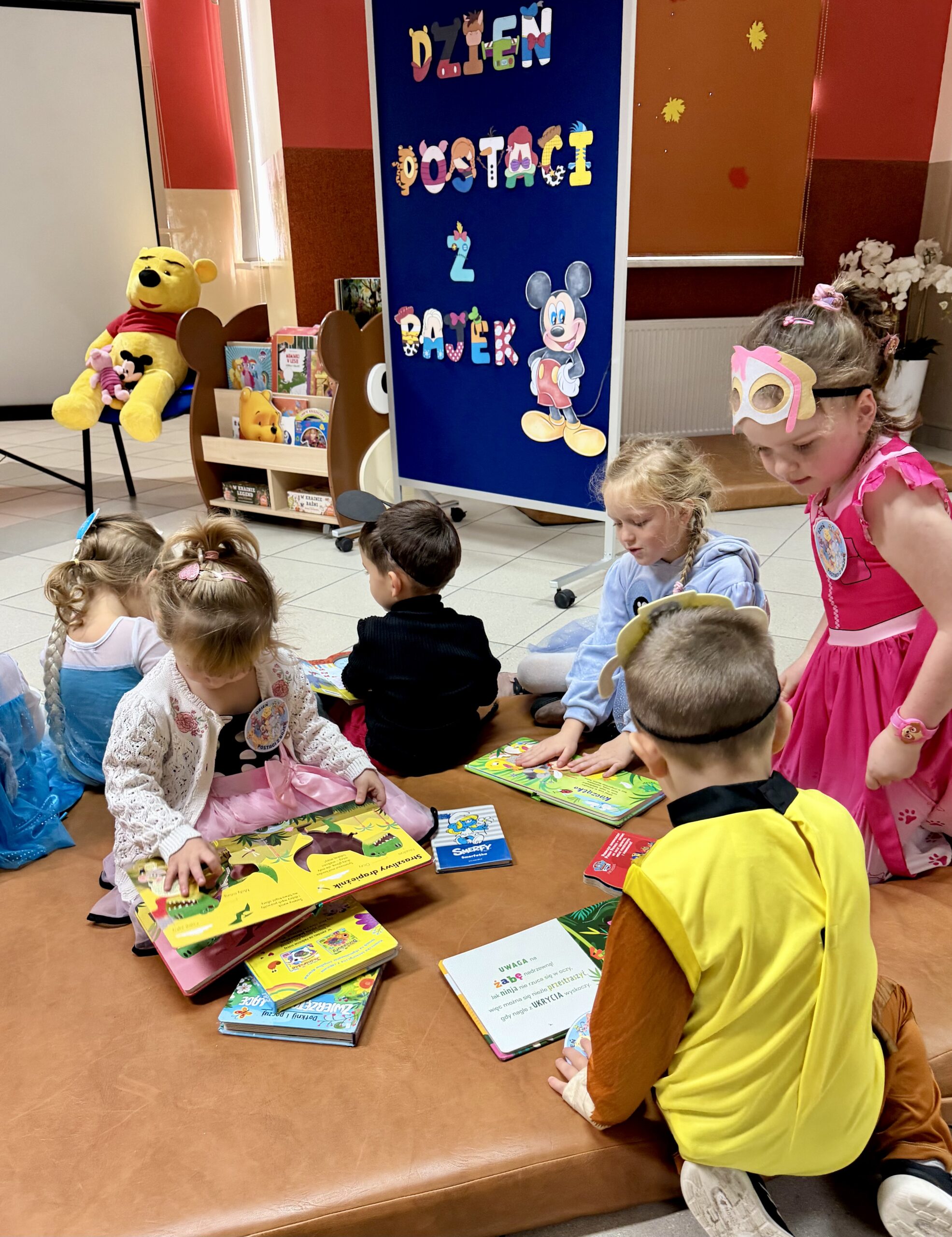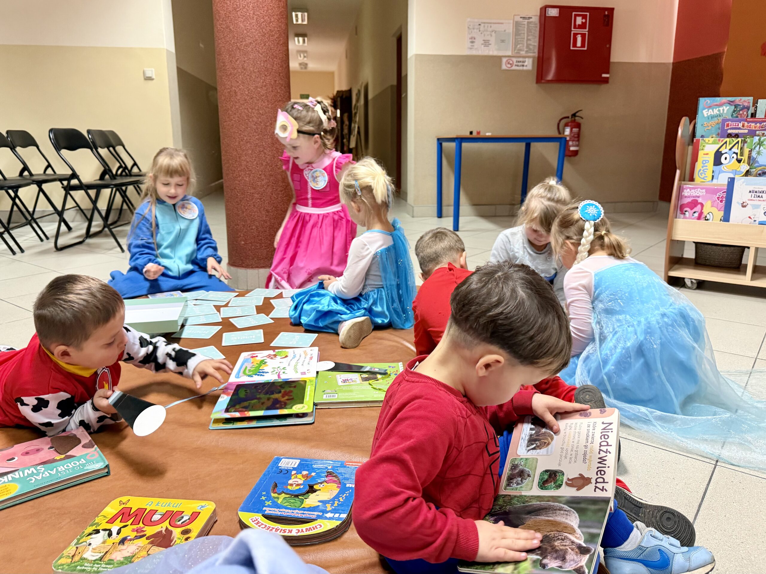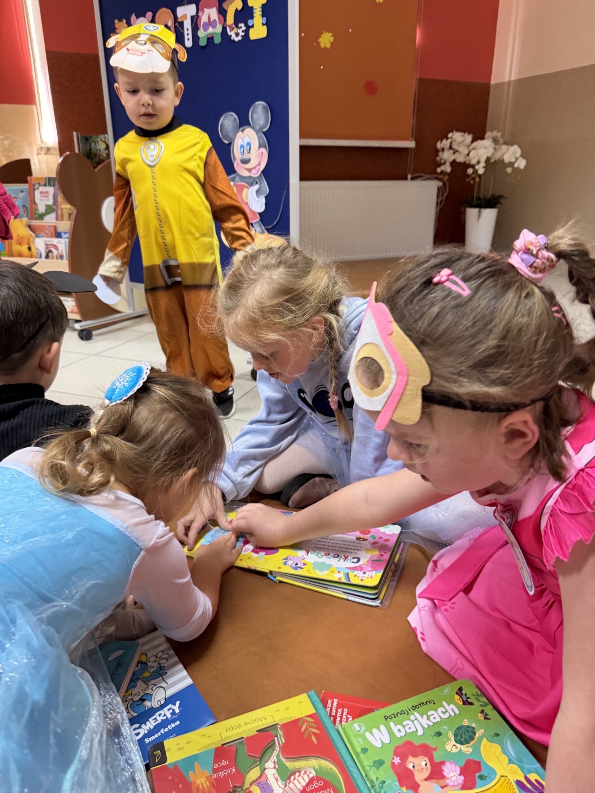 Po przeczytaniu bajki dzieci wzięły udział w krótkiej zabawie tematycznej oraz obejrzały kolorowe książki z działu literatury dziecięcej. Następnie obejrzały bajkę wyświetlaną na projektorze rodem z PRLu, który wzbudził duże zainteresowanie. W bibliotece panowała radosna atmosfera, a najmłodsi z entuzjazmem odkrywali, jak wiele ciekawych historii kryją biblioteczne półki.