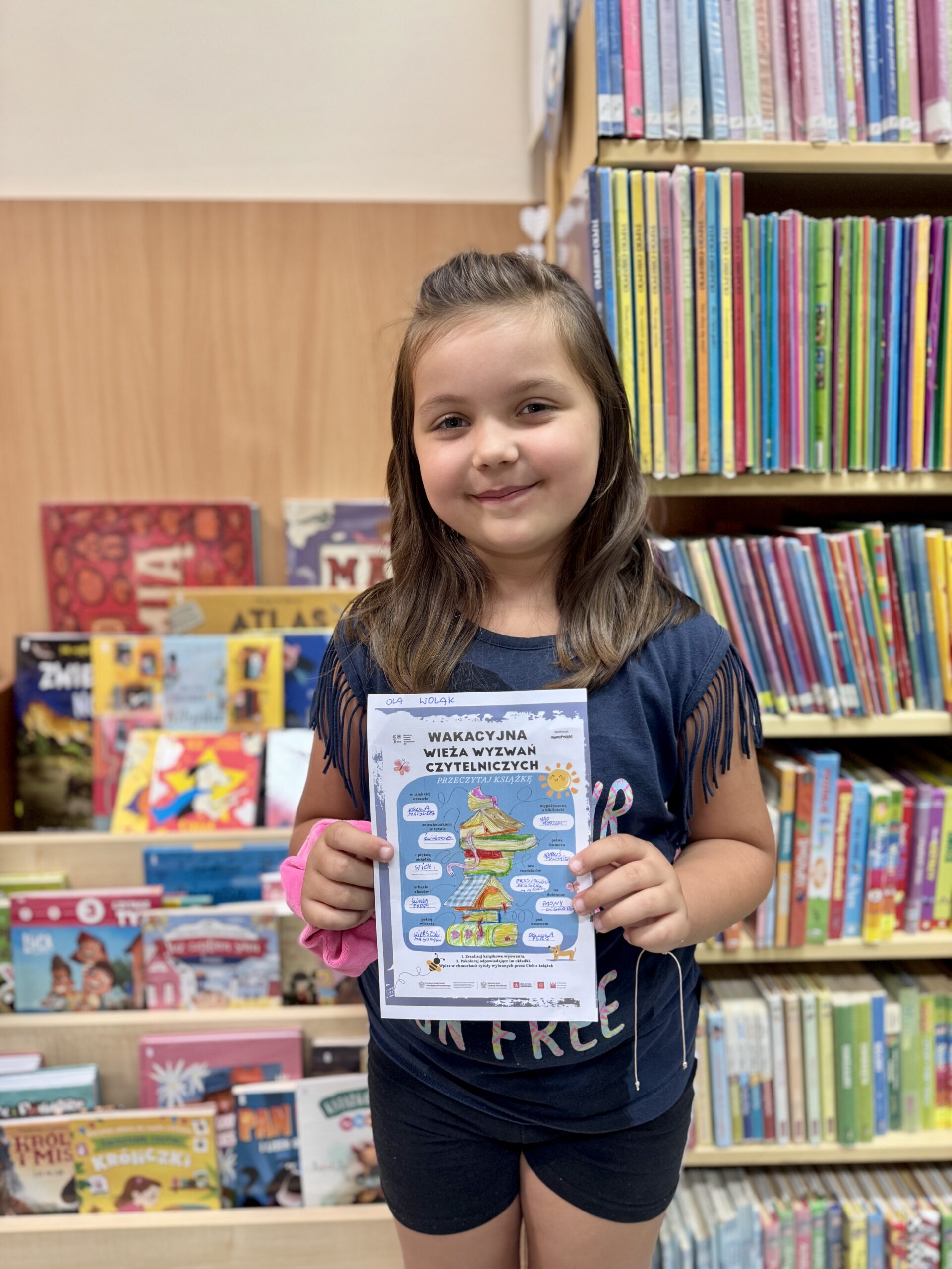 W „Wakacyjnej wieży czytelniczej” udział wzięło 21 osób. Zadaniem było odebranie karty z biblioteki i czytanie książek określonych w karcie. Po przeczytaniu należało pokolorować książkę odpowiadająca zadaniu. Po ukończeniu całej wieży w bibliotece czekała nagroda. Czytelnicy bardzo lubią takie wyzwania, dlatego chętnie się w nią włączyli.