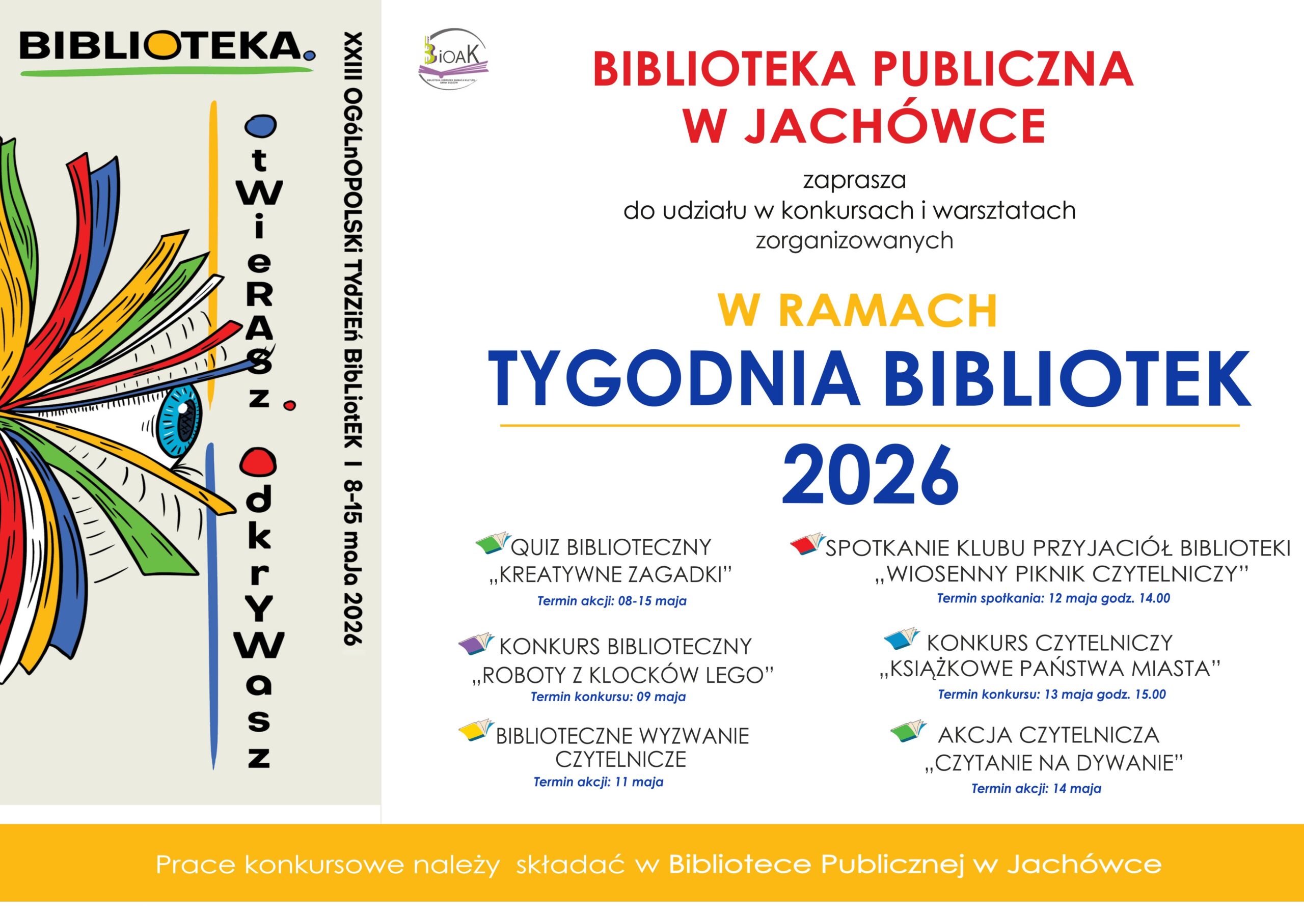 BiOAK > Wydarzenia kulturalne > XXIII OGÓLNOPOLSKI TYDZIEŃ BIBLIOTEK: ZAPRASZAMY DO UDZIAŁU W KONKURSACH I SPOTKANIACH CZYTELNICZYCH PRZYGOTOWANYCH PRZEZ BIBLIOTEKI PUBLICZNE GMINY BUDZÓW