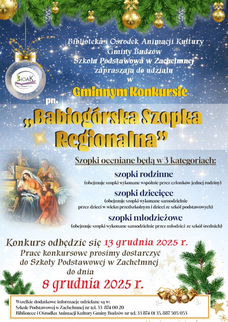 ZAPRASZAMY DO UDZIAŁU W GMINNYM KONKURSIE NA “BABIOGÓRSKĄ SZOPKĘ REGIONALNĄ” 2025