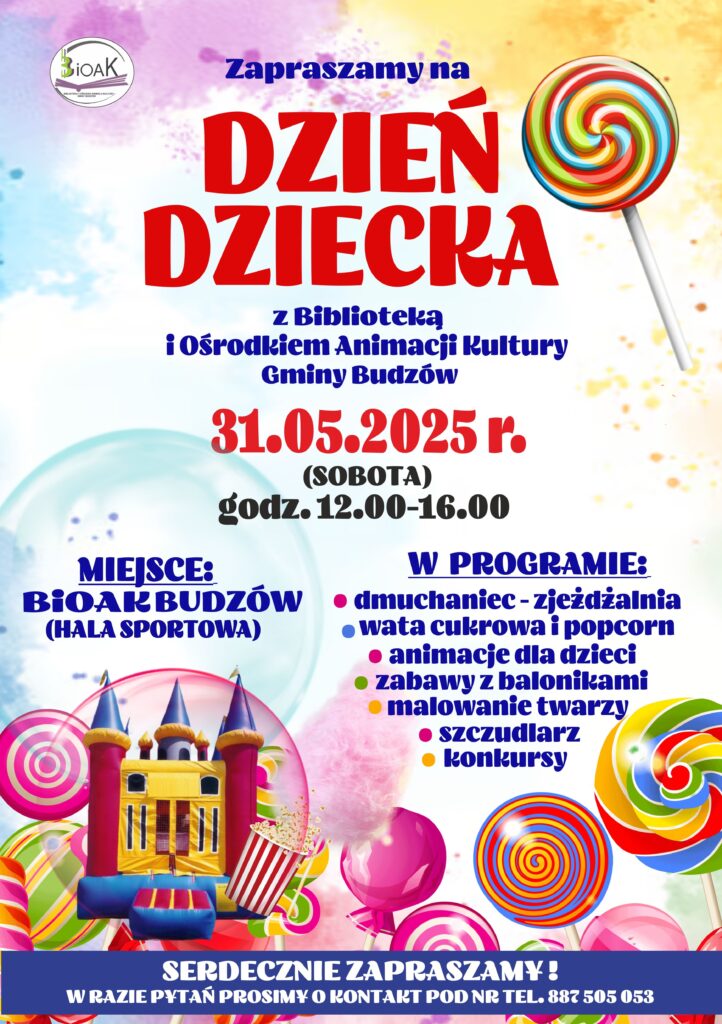 ZAPRASZAMY NA DZIEŃ DZIECKA Z BIBLIOTEKĄ I OŚRODKIEM ANIMACJI KULTURY GMINY BUDZÓW!