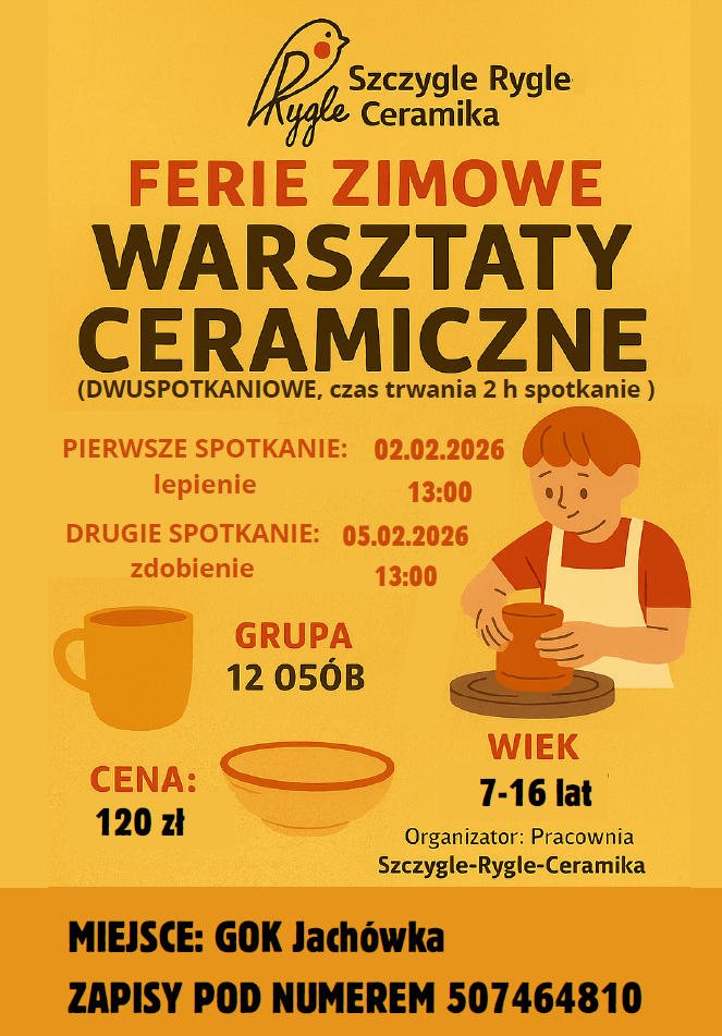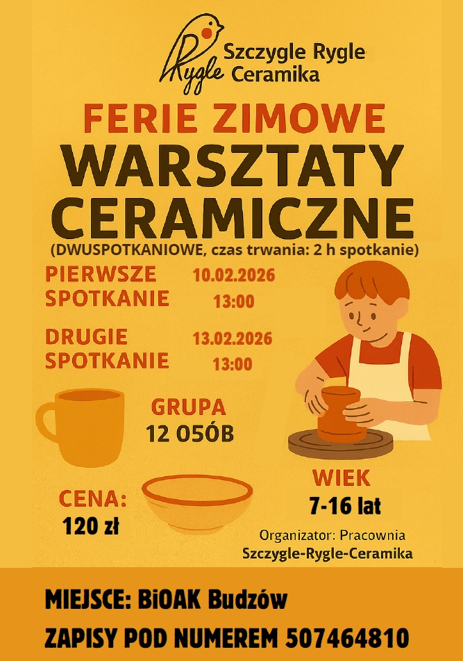 ZAPRASZAMY NA WARSZTATY CERAMICZNE PODCZAS FERII ZIMOWYCH 2026